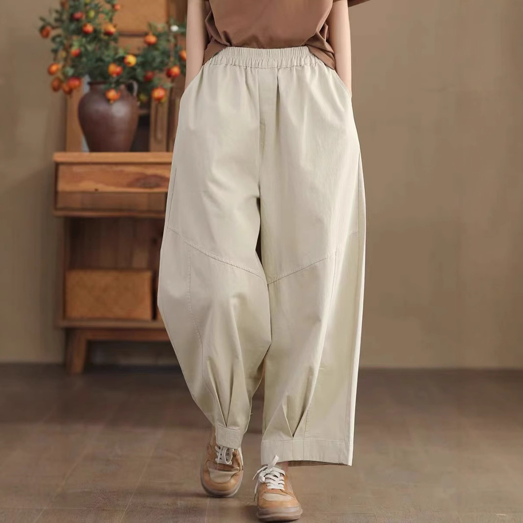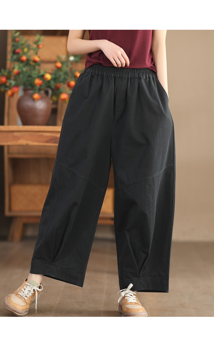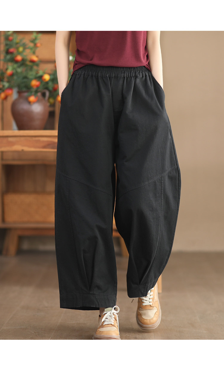 3 차원 바느질 코튼 캐주얼 바지 여성의 느슨한 느슨한 단색 예술적 할린 바지