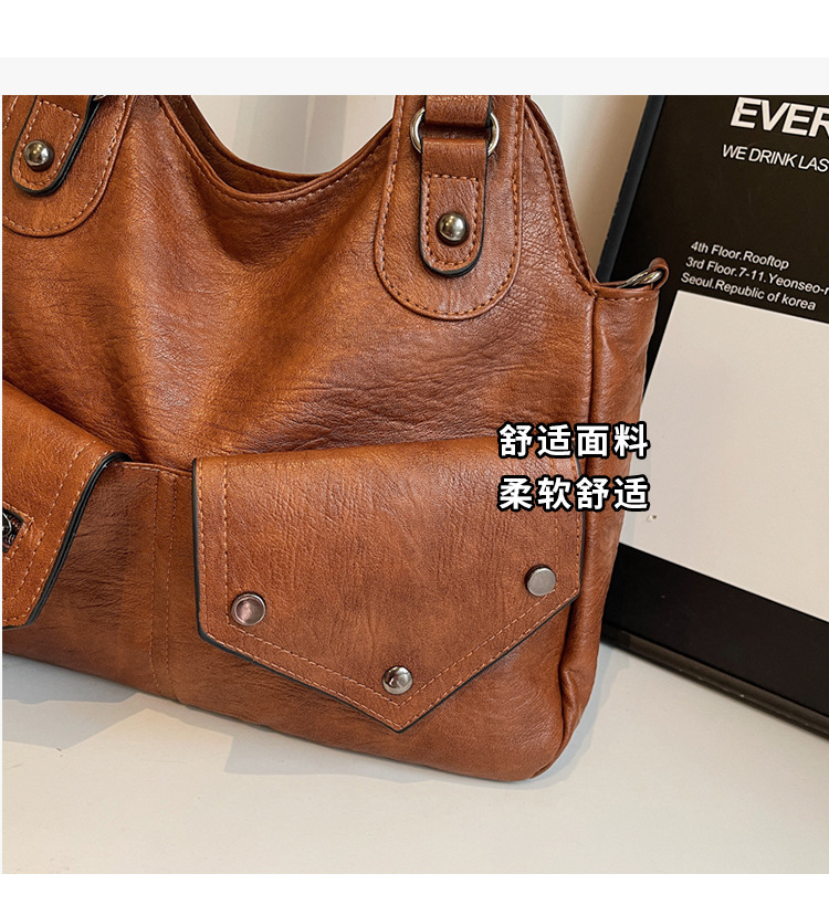 틈새 디자인 오토바이 스타일 토트 백 여성의 2024 겨울 새로운 복고풍 간단한 통근 휴대용 어깨 크로스 백