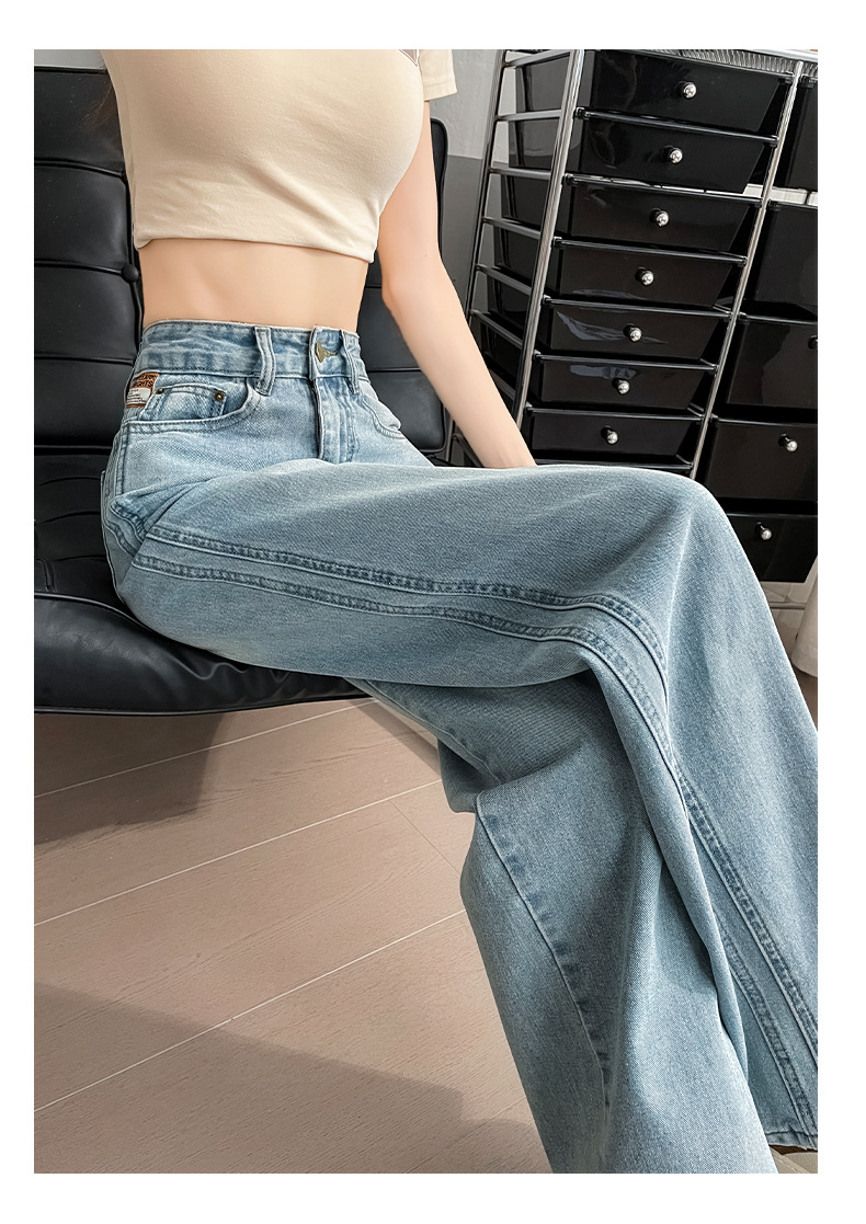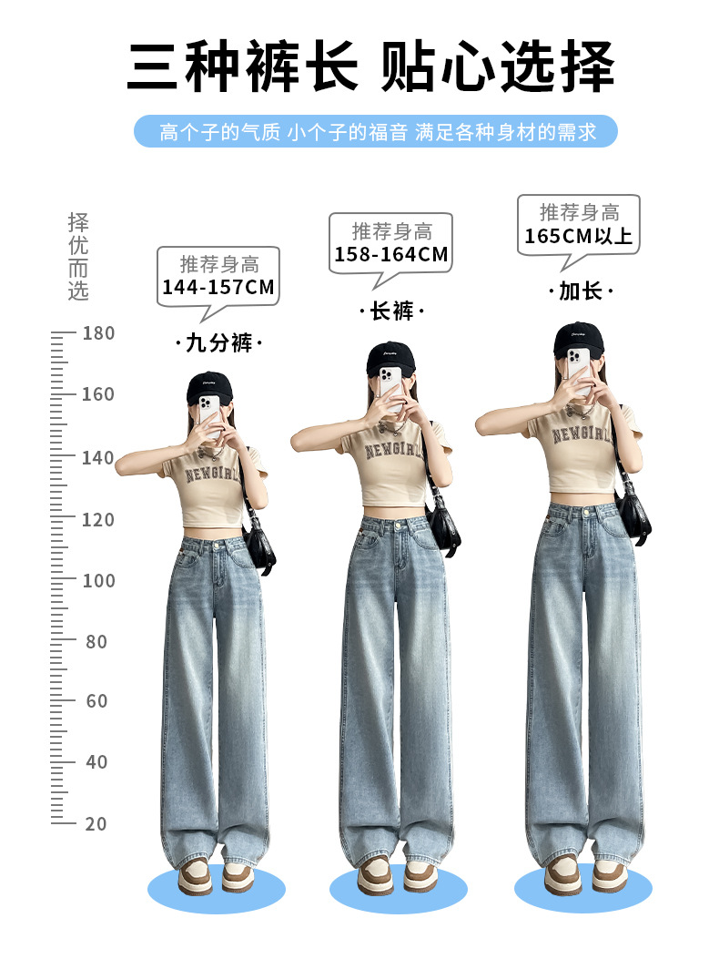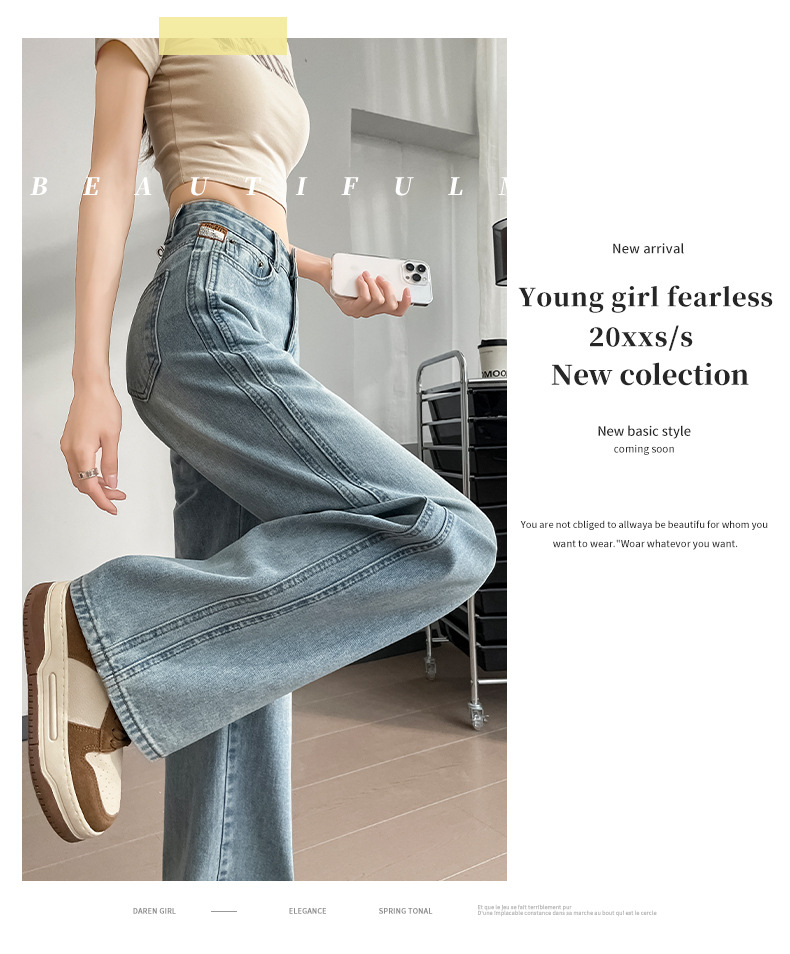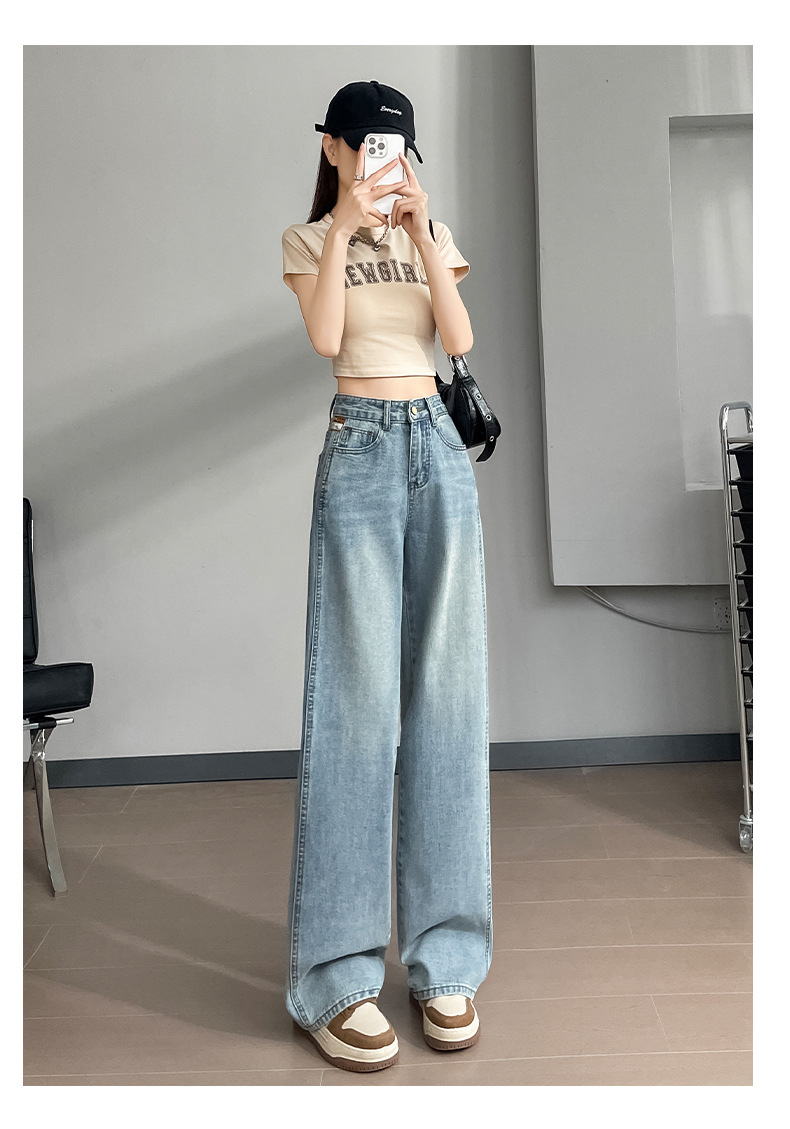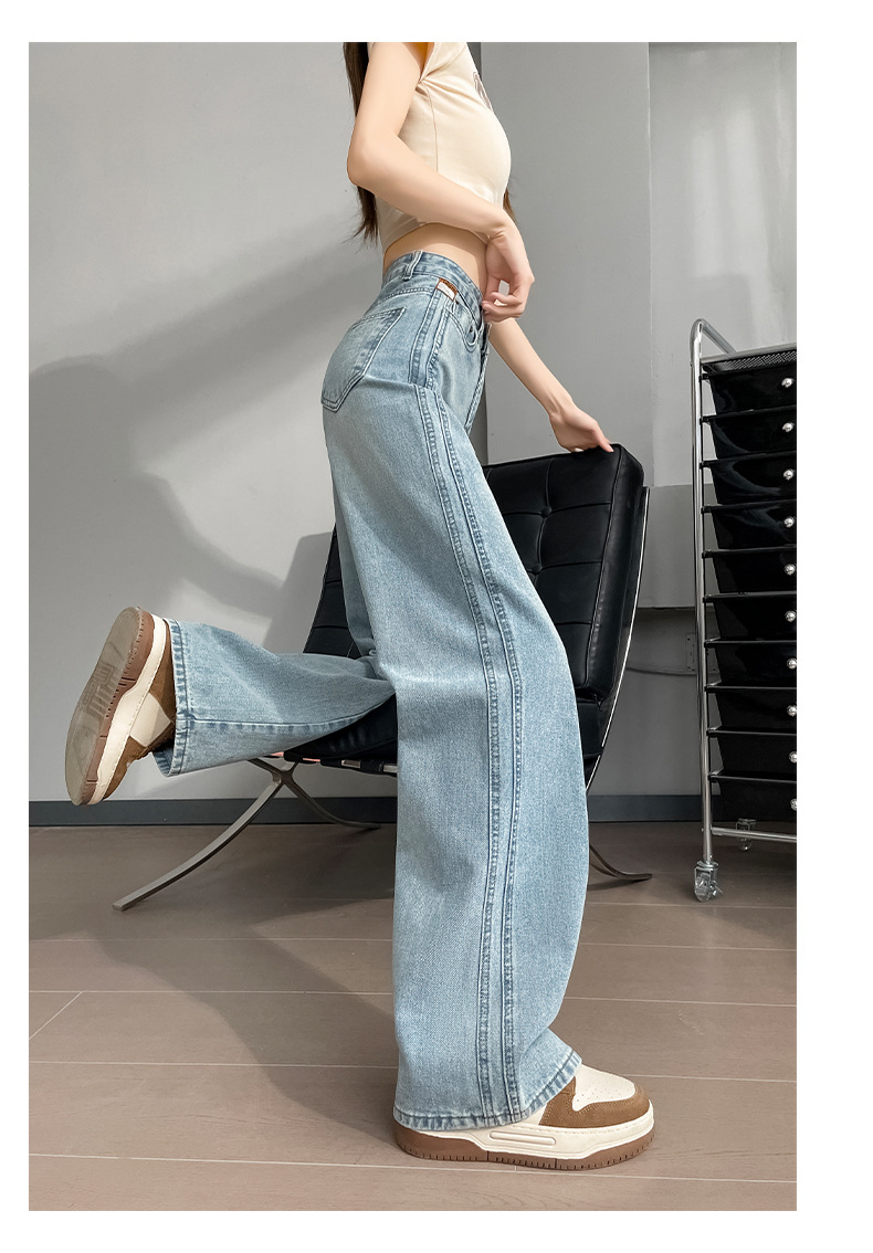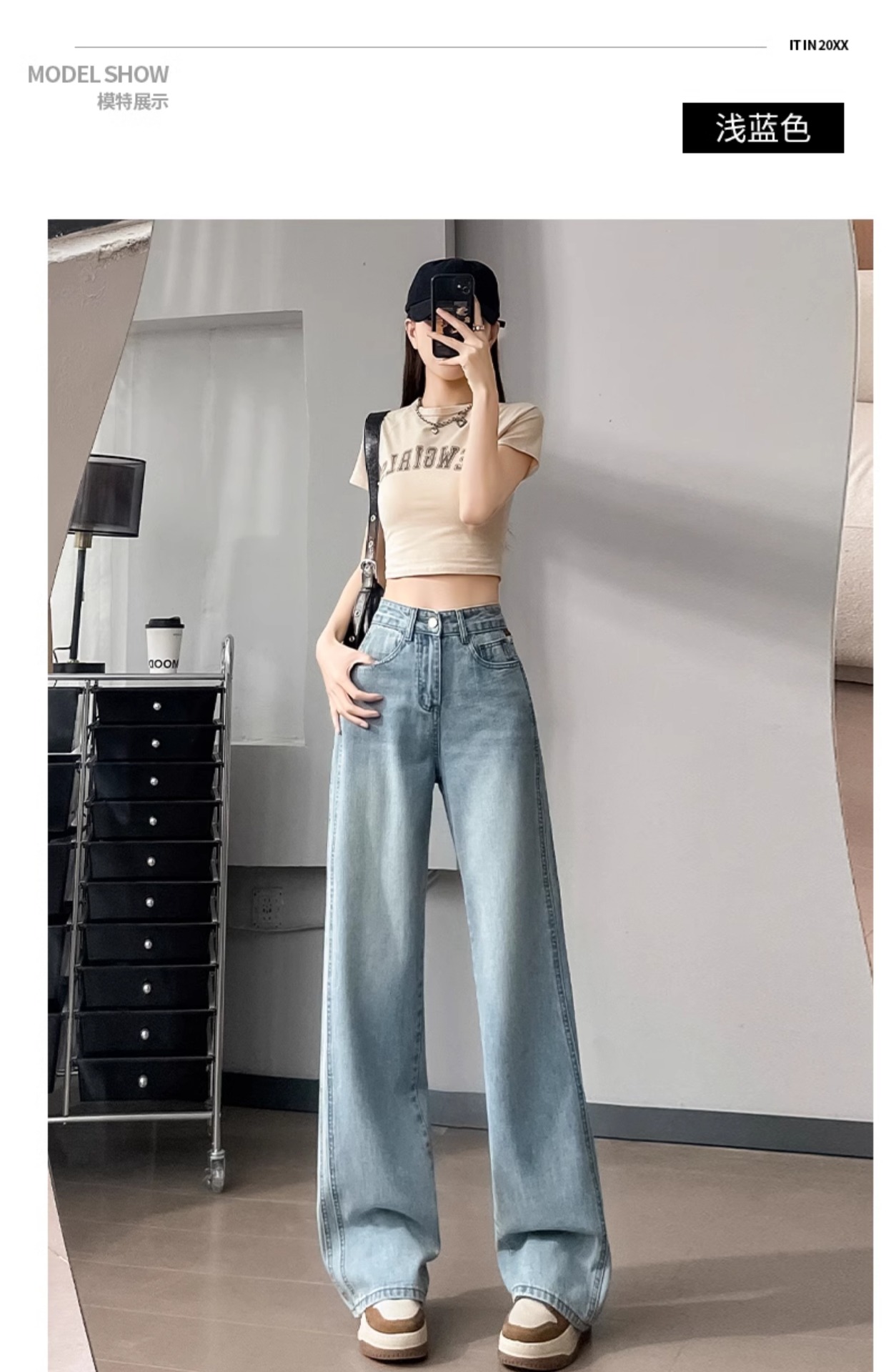 넓은 다리 청바지 여성의 봄과 가을 2025 새로운 느슨한 높은 허리 기모 아이들을위한 직선 다리 바지스토어 가기