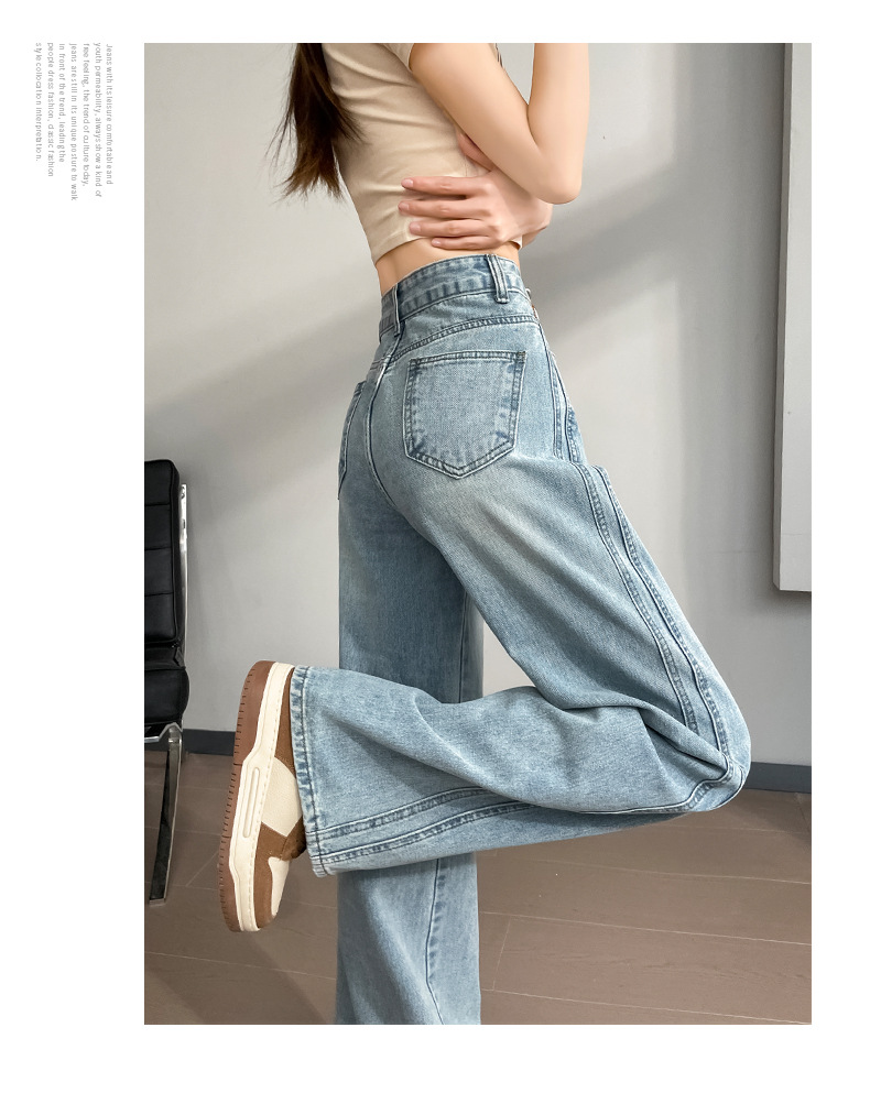 넓은 다리 청바지 여성의 봄과 가을 2025 새로운 느슨한 높은 허리 기모 아이들을위한 직선 다리 바지