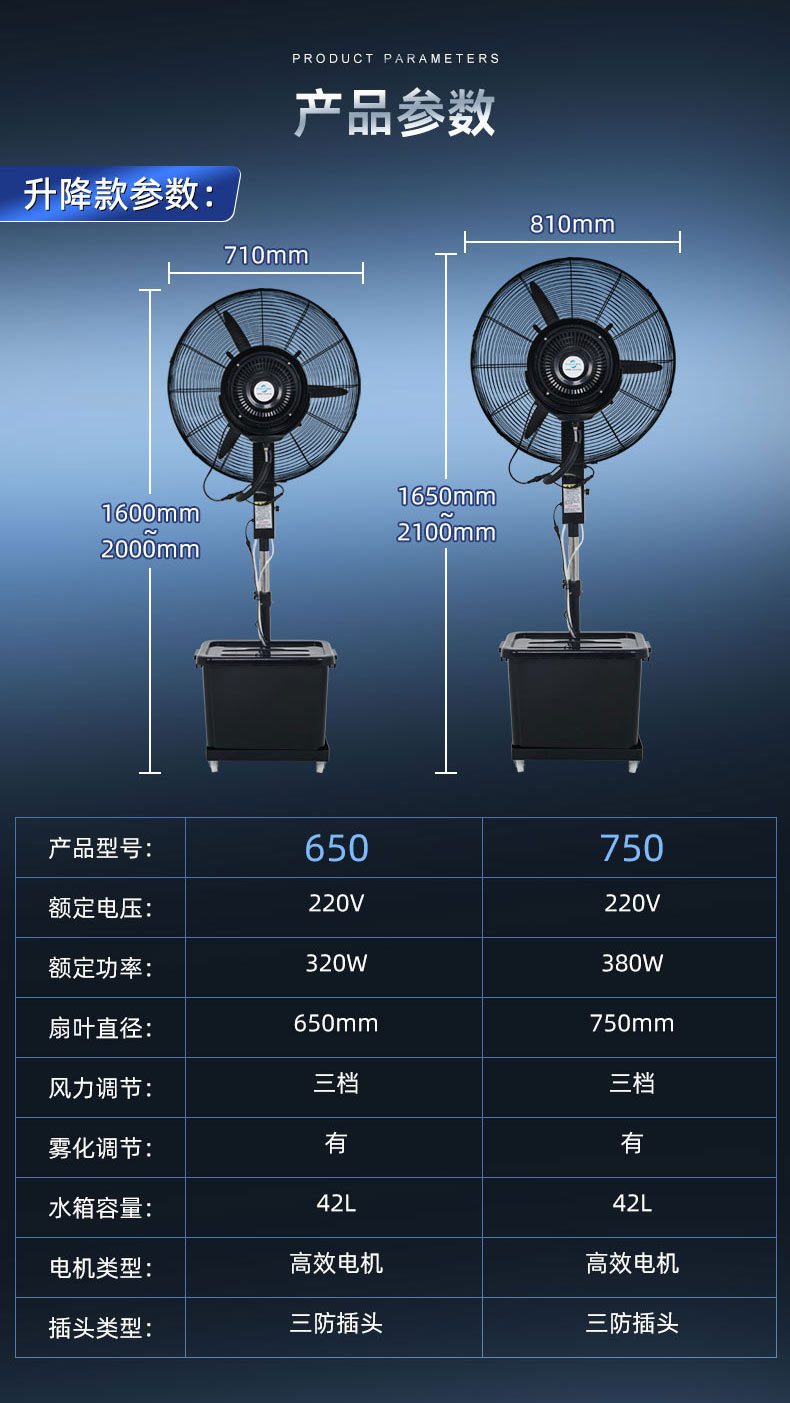 • 750 리프트 모델 [강력한 모터 + 알루미늄 팬 블레이드]
