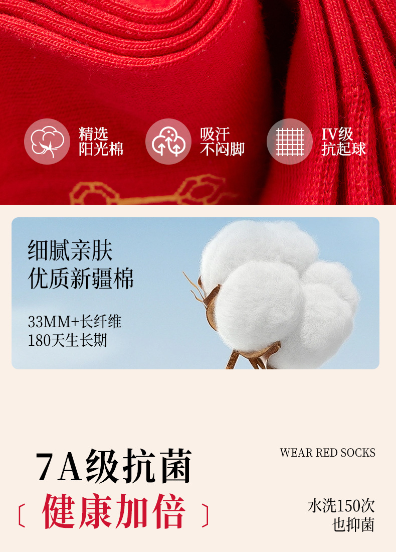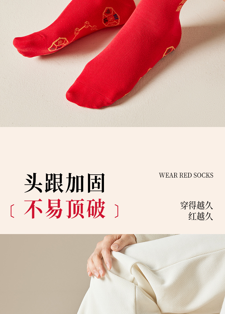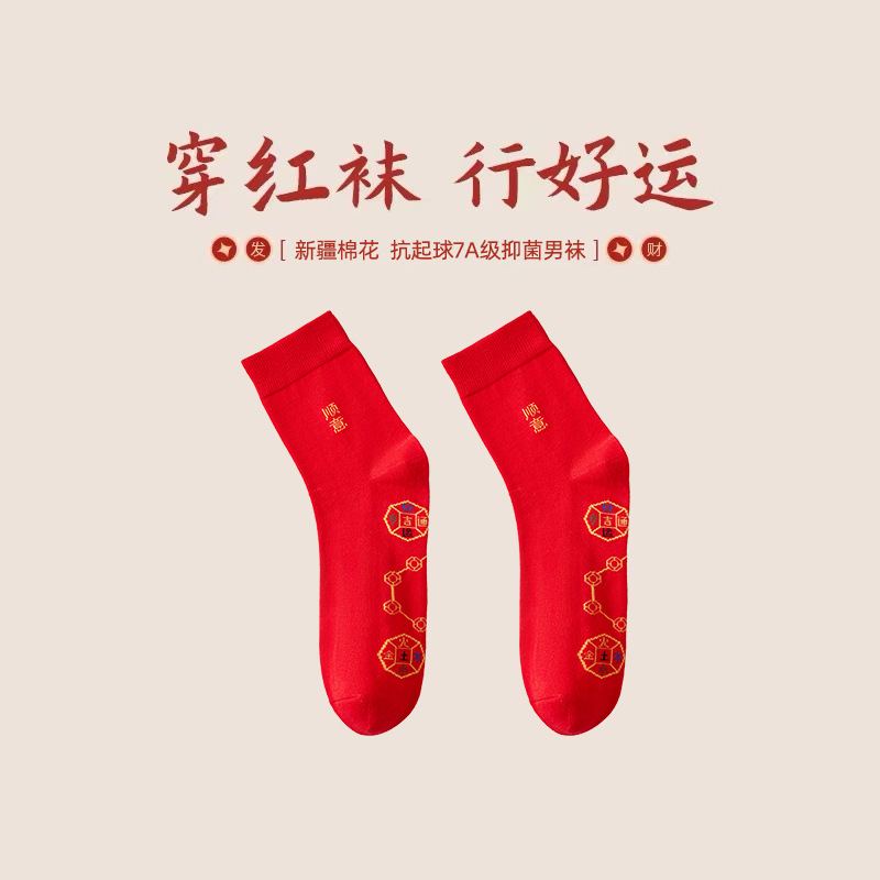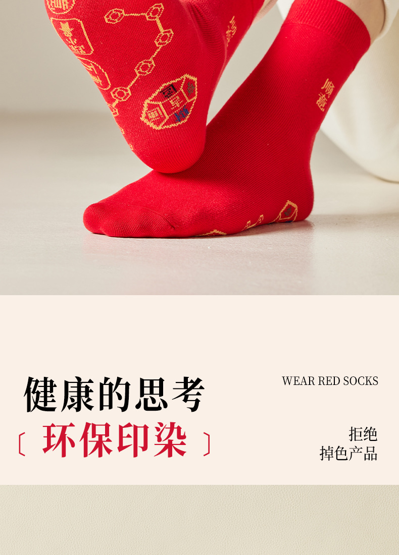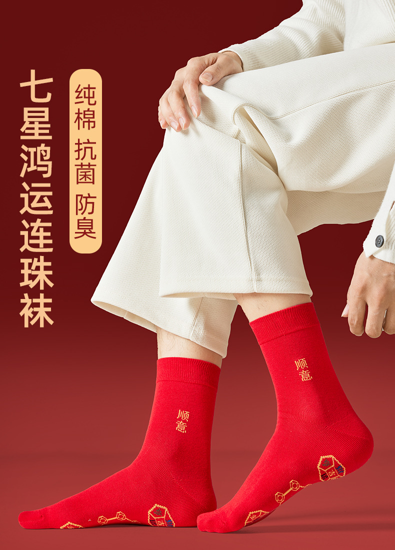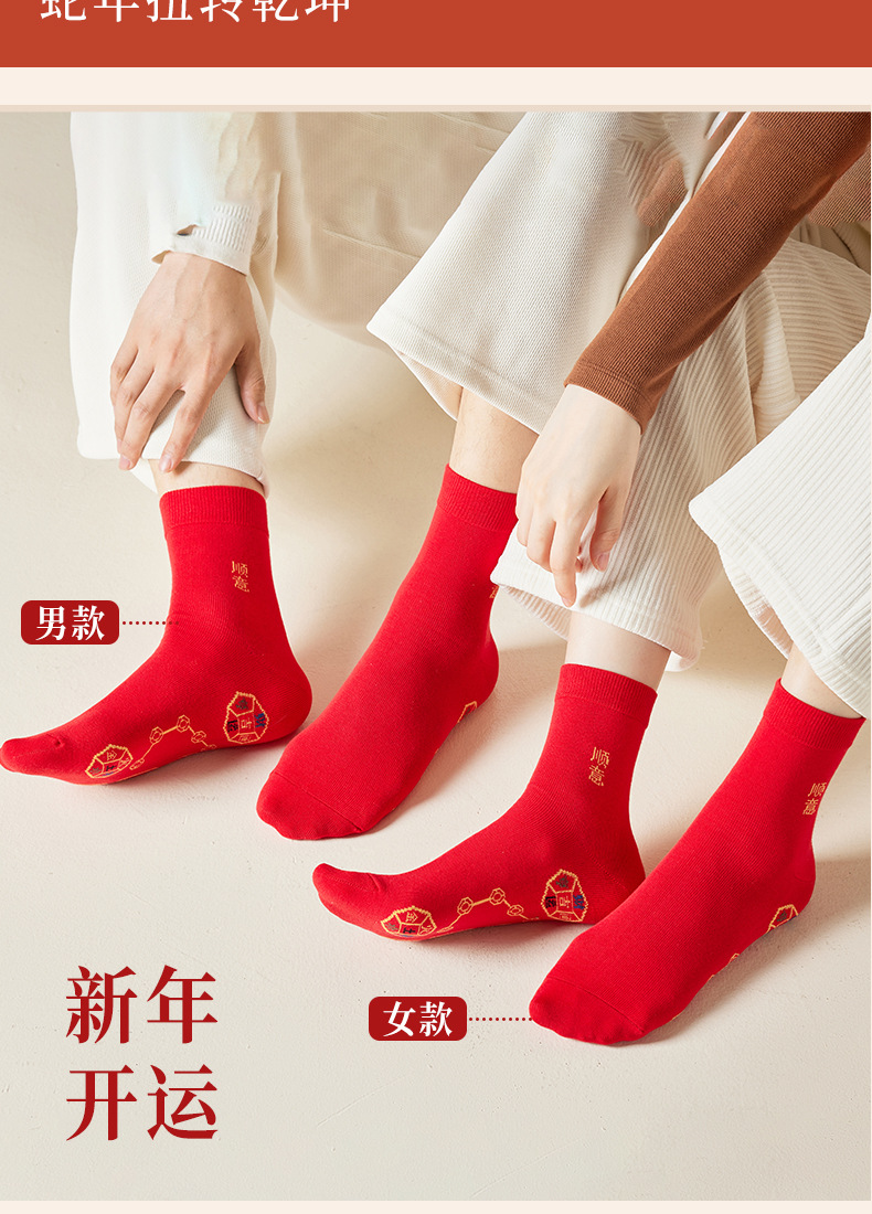 남성과 여성을위한 7 성급 레드 양말 100% 순수 코튼 미드 튜브 양말 발 7 스타 Lianzhu 뱀 년 커플 결혼스토어 가기