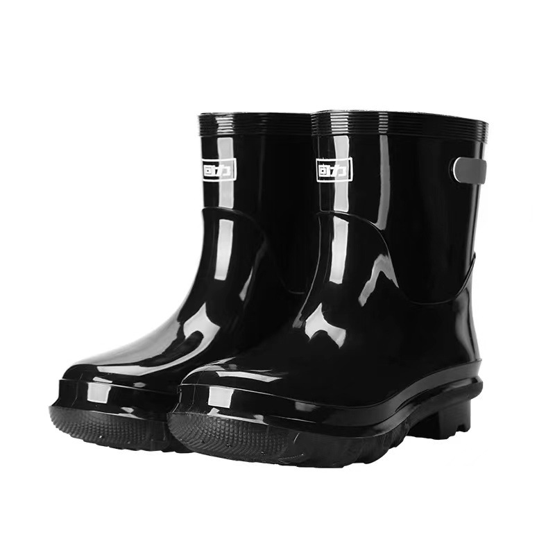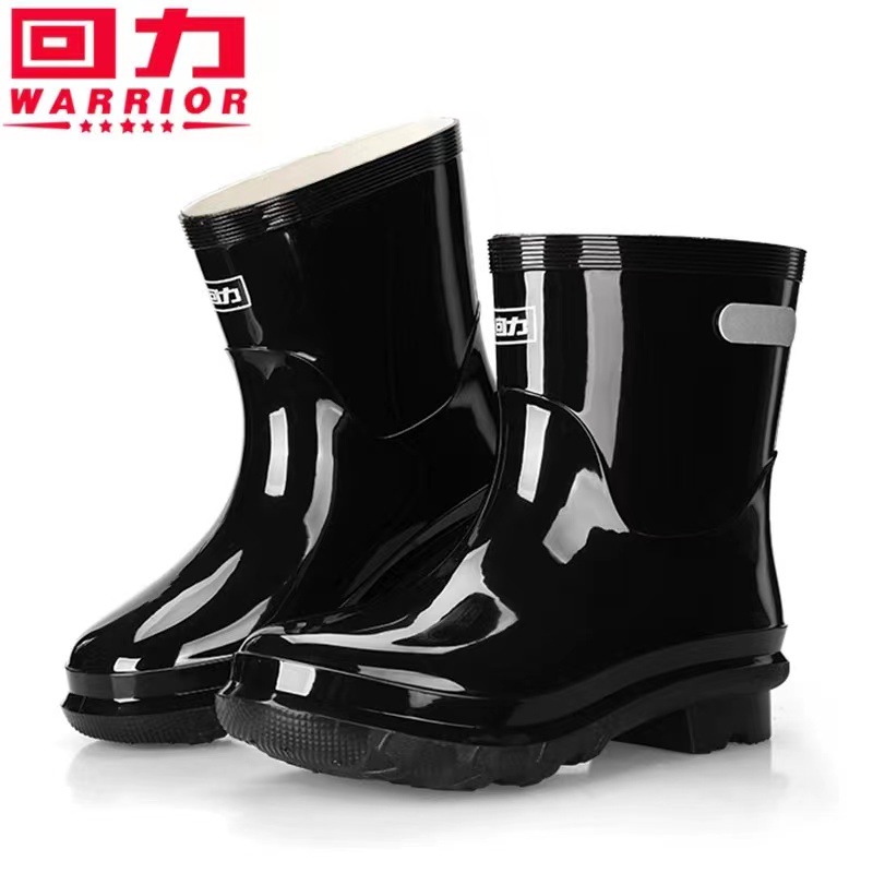 Huili 레인 부츠 028 남성 산업 및 광업 노동 보호 비 슬립 내마모성 장화 반사 스트립과 양털 커버 나이트 블랙 워터 슈즈