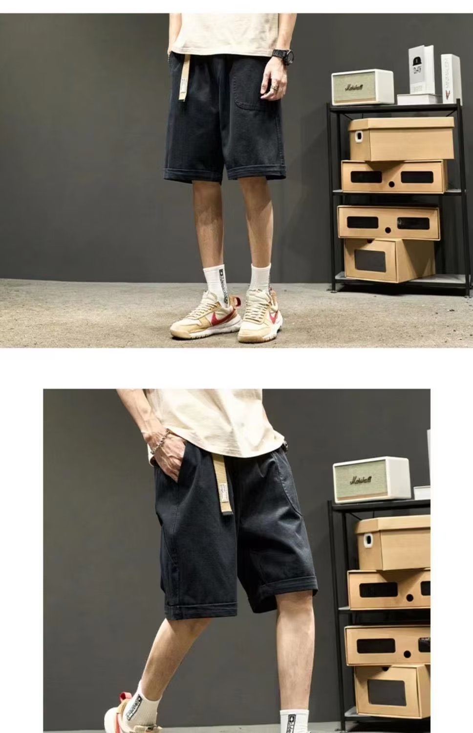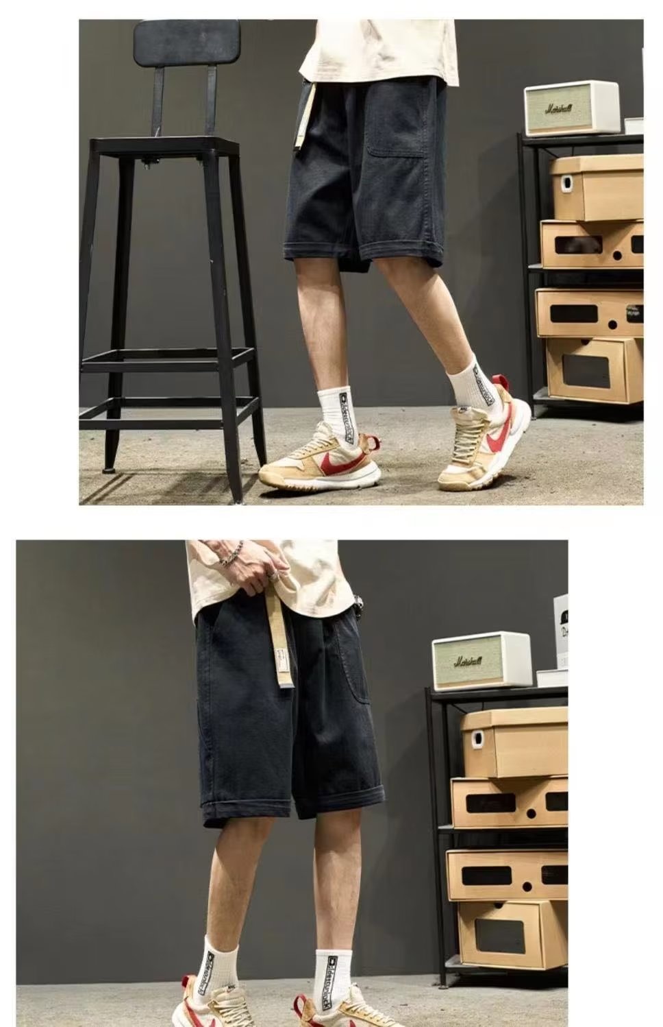 남성 여름 느슨한 도구 데님 바지 디자인 센스 일본 스타일 레트로 캐주얼 바지스토어 가기