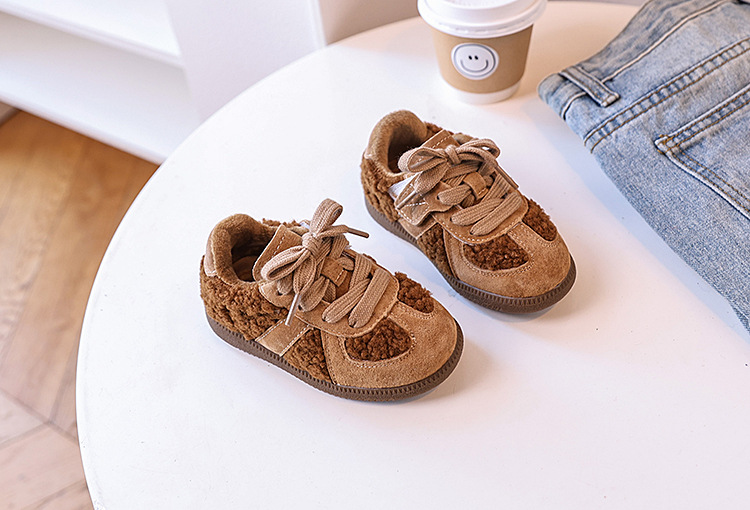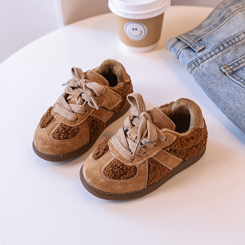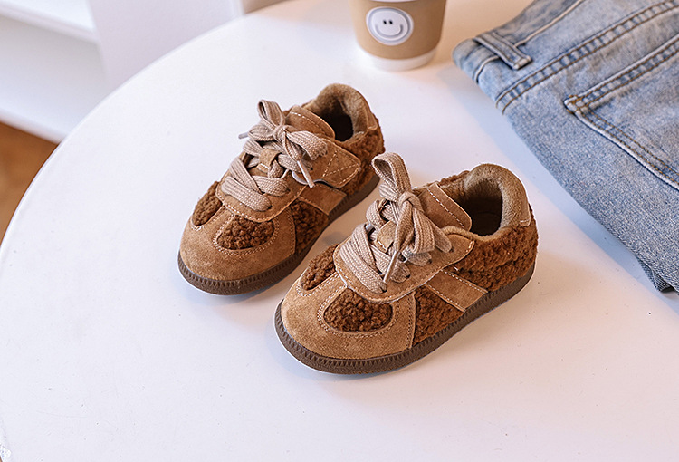 어린이 면화 2024 소년 로우 탑 보드 신발 소녀 어린이 독일 훈련 신발 겨울 외부 따뜻한 여성의 보물 마오 마오 신발 착용스토어 가기