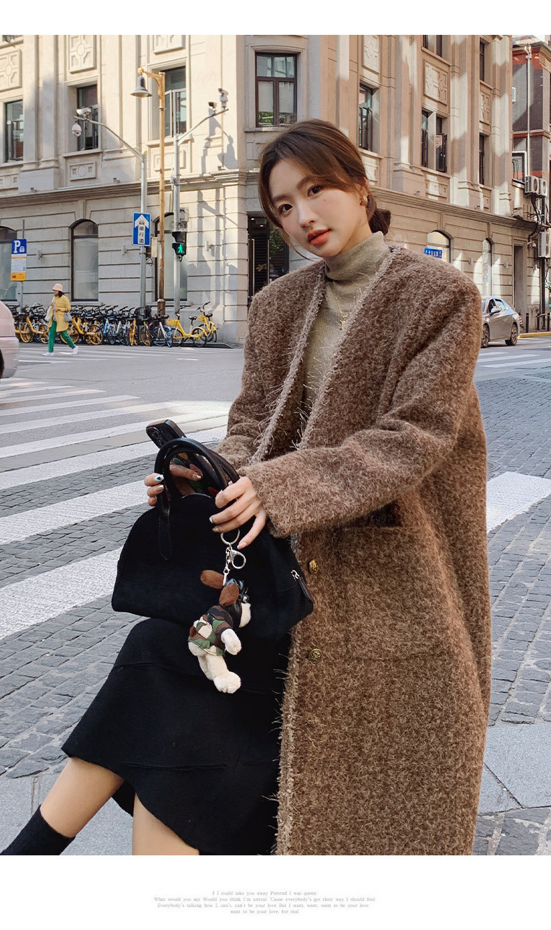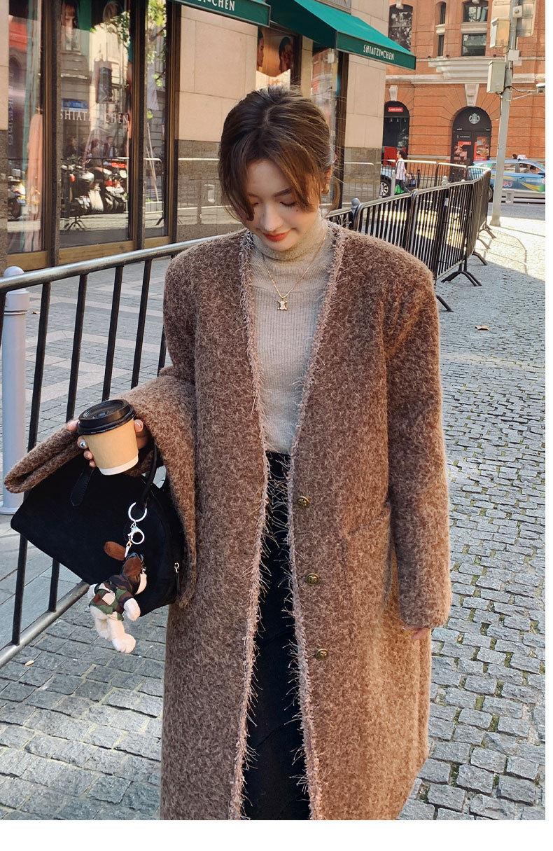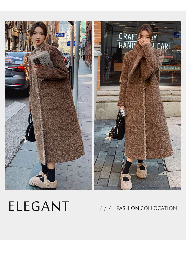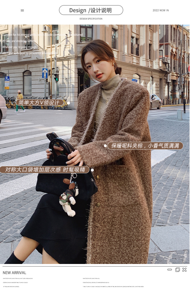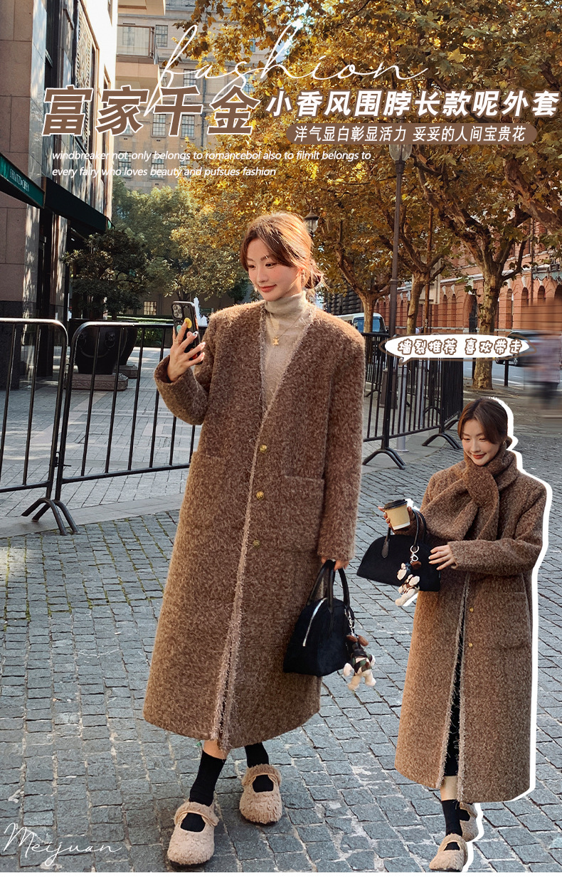 다크 브라운 샤넬 스타일 모직 코트 겨울 여성의 2024 새로운 루즈 하이 엔드 우아한 퀼트 롱 모직 코트스토어 가기
