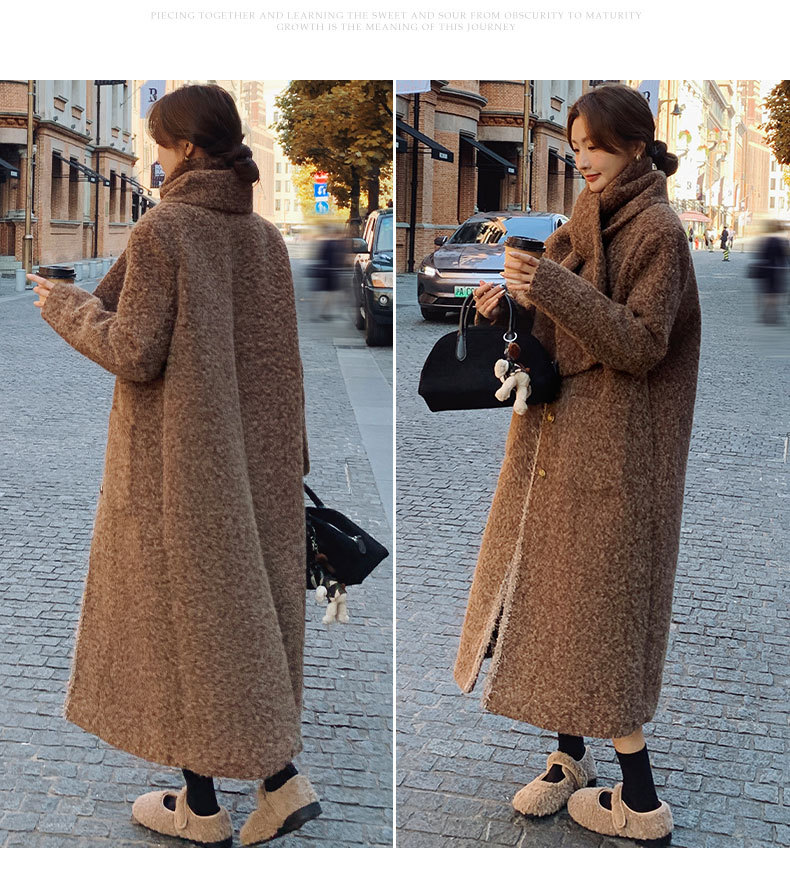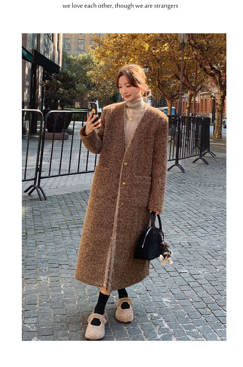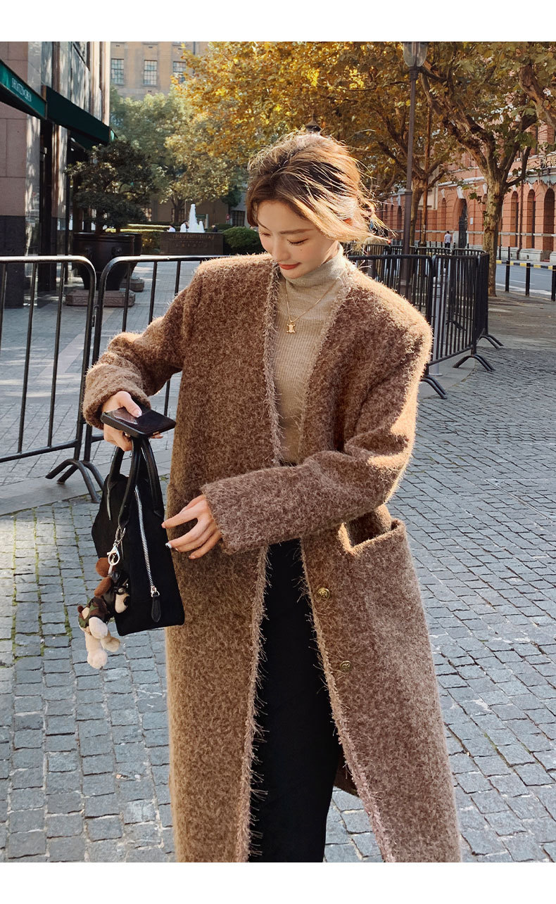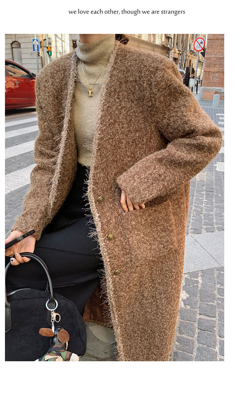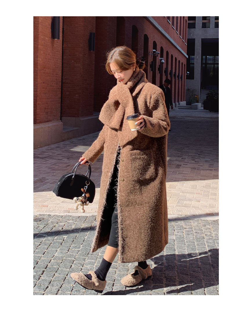 다크 브라운 샤넬 스타일 모직 코트 겨울 여성의 2024 새로운 루즈 하이 엔드 우아한 퀼트 롱 모직 코트스토어 가기