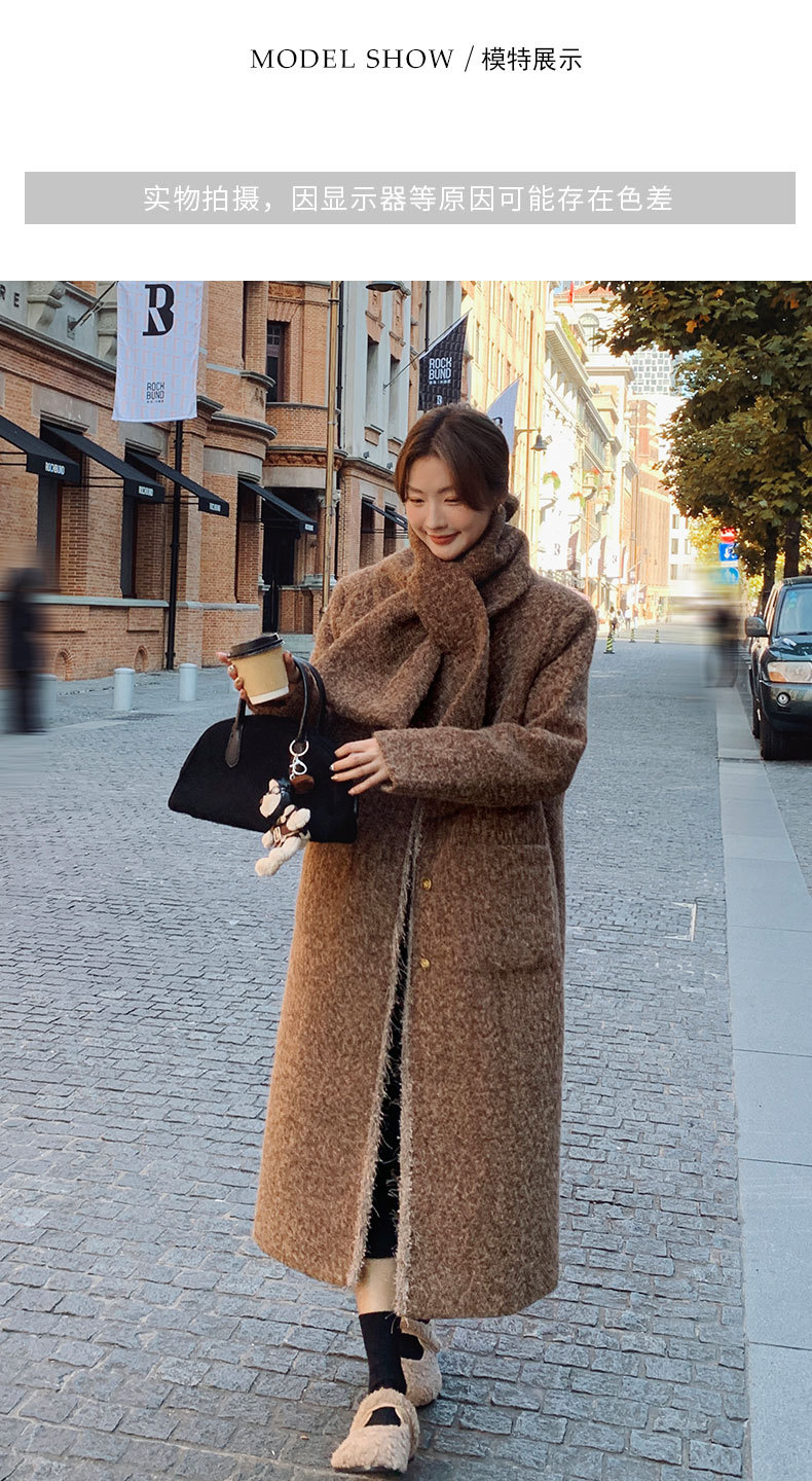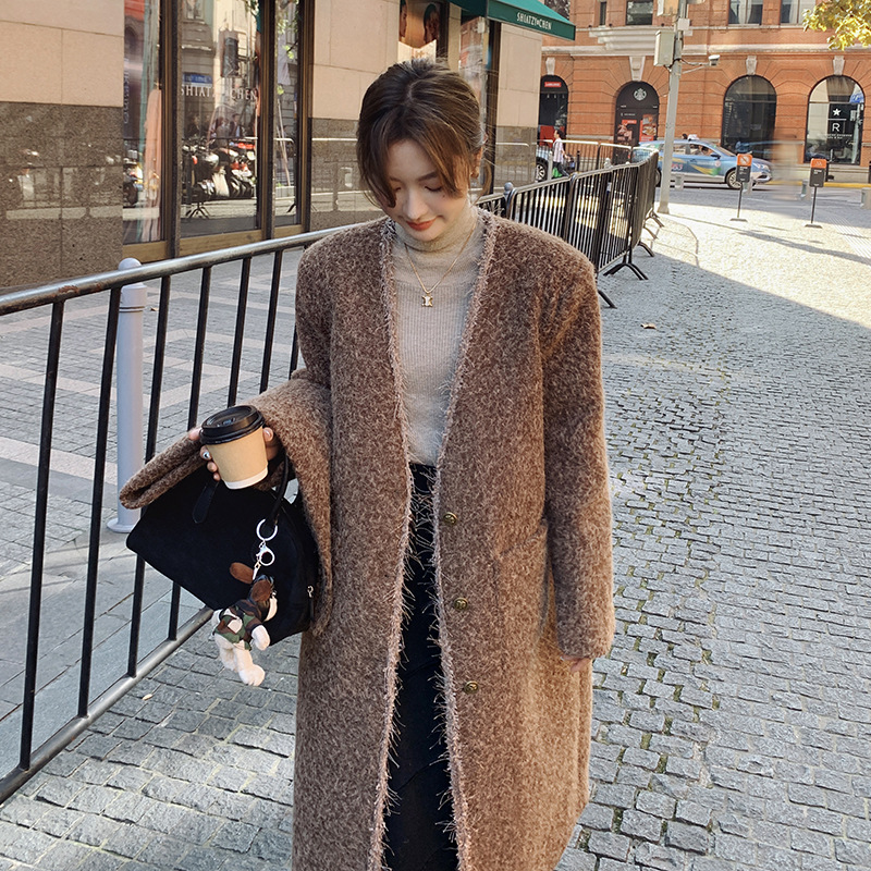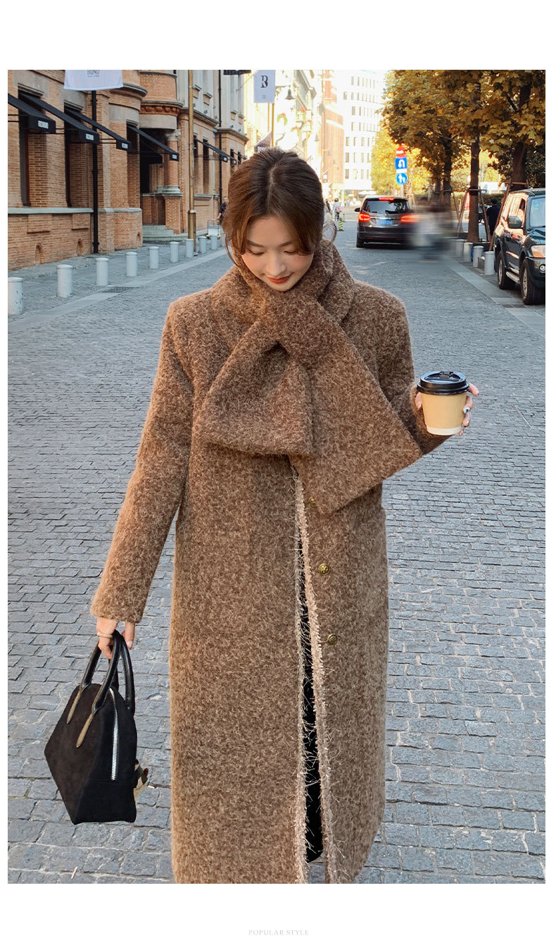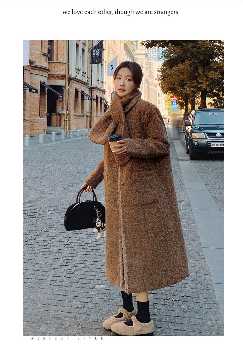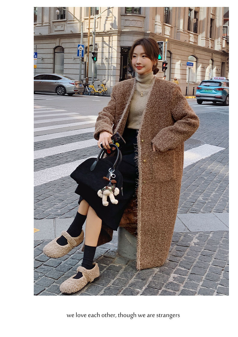 다크 브라운 샤넬 스타일 모직 코트 겨울 여성의 2024 새로운 루즈 하이 엔드 우아한 퀼트 롱 모직 코트스토어 가기