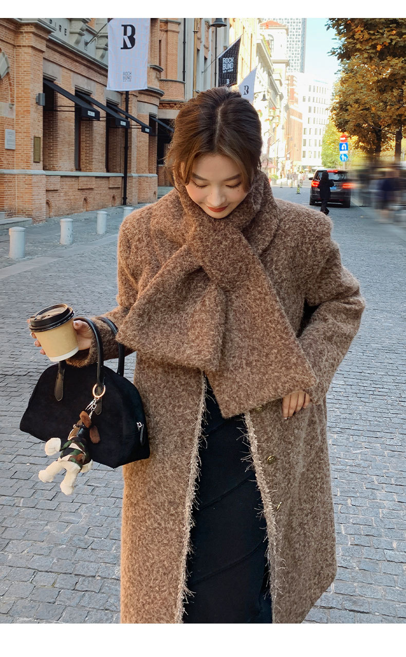 다크 브라운 샤넬 스타일 모직 코트 겨울 여성의 2024 새로운 루즈 하이 엔드 우아한 퀼트 롱 모직 코트