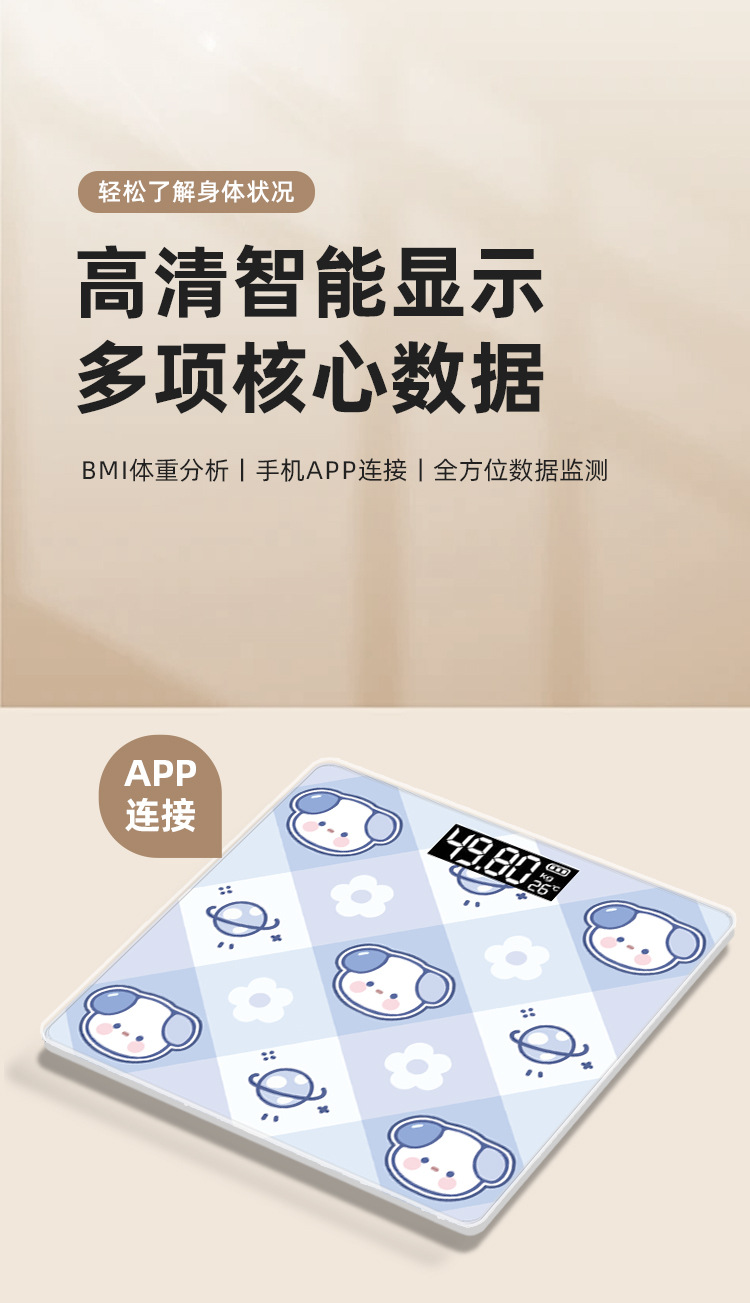2025 새로운 국경 지능형 체지방 가늠자 충전 만화 전자 가늠자 가구 규모 성인 정밀 지방 측정