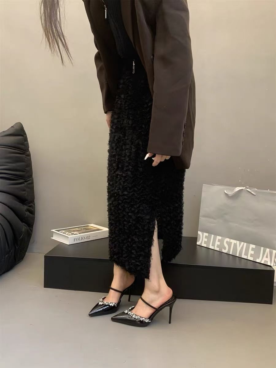 하이 엔드 스타일 풀 다이아몬드 연회 신발 여성 슬림 신발 2024 새로운 스틸레토 힐 포인팅 발가락 프렌치 스타일 하이힐스토어 가기