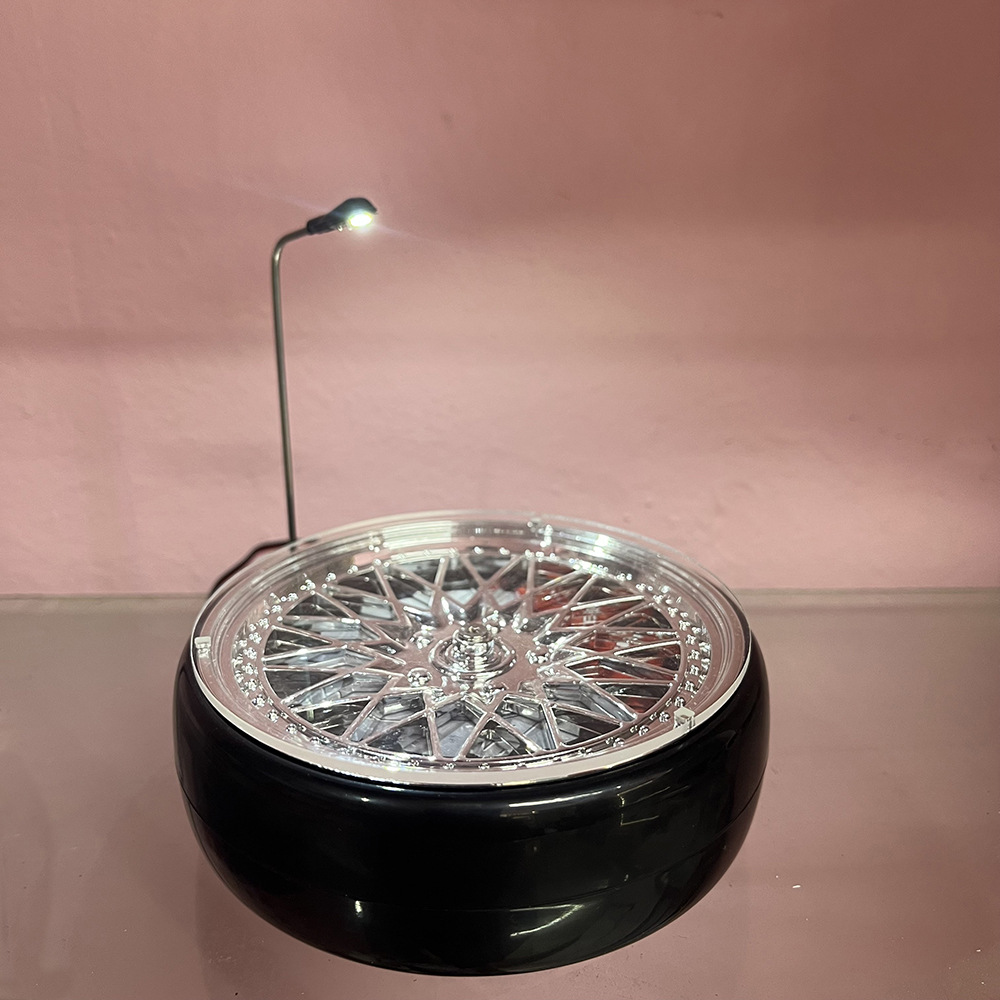 【产品名称】:1:64仿真轮胎转台车模旋转展示台带路灯套装可充电(2色可选)