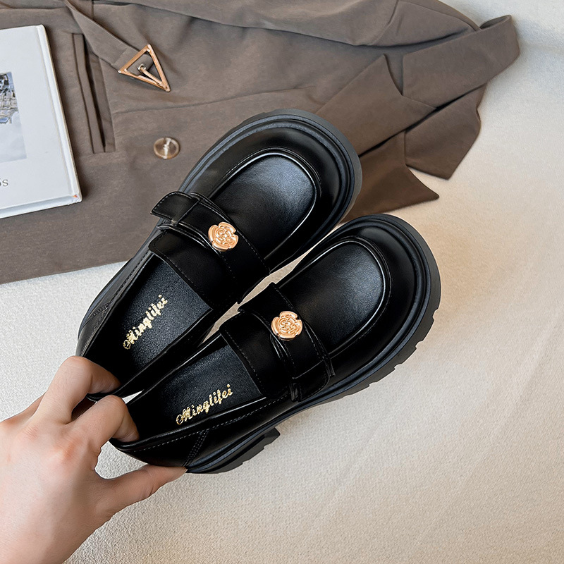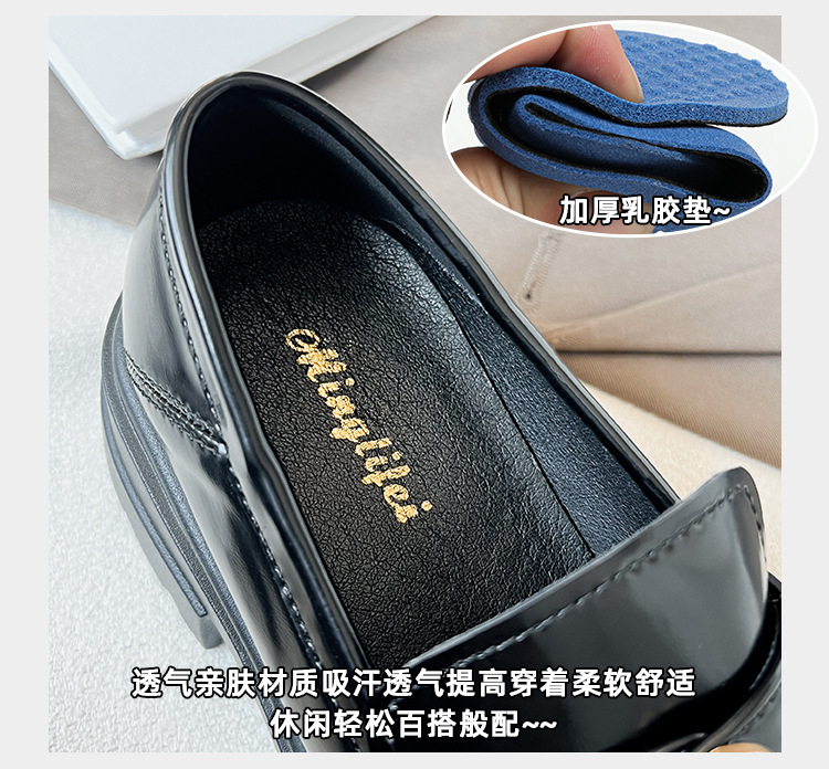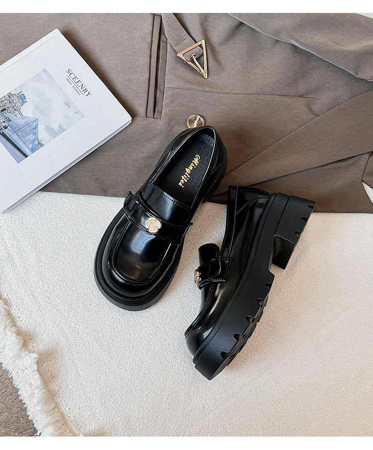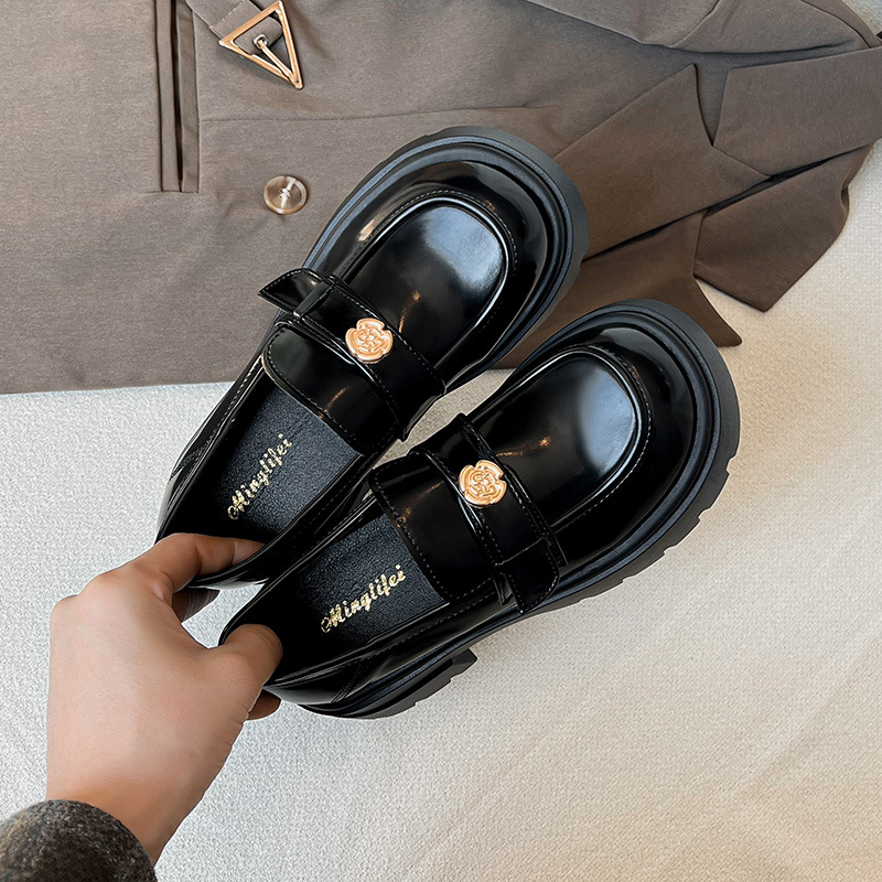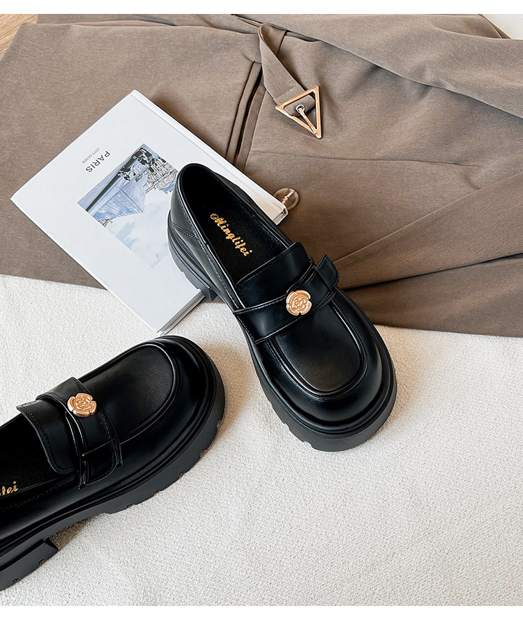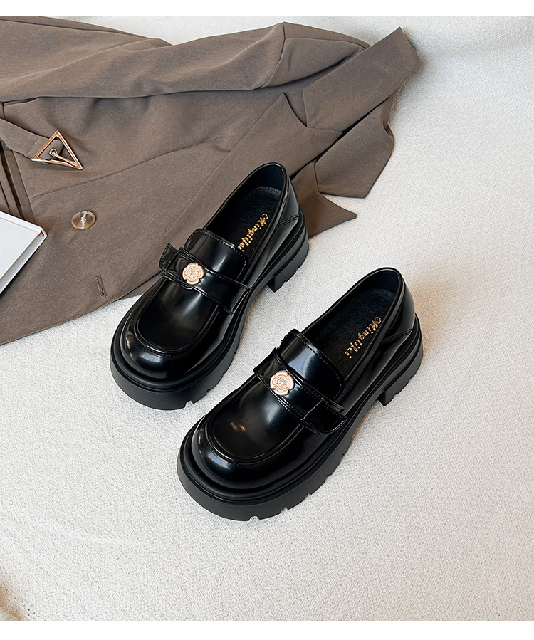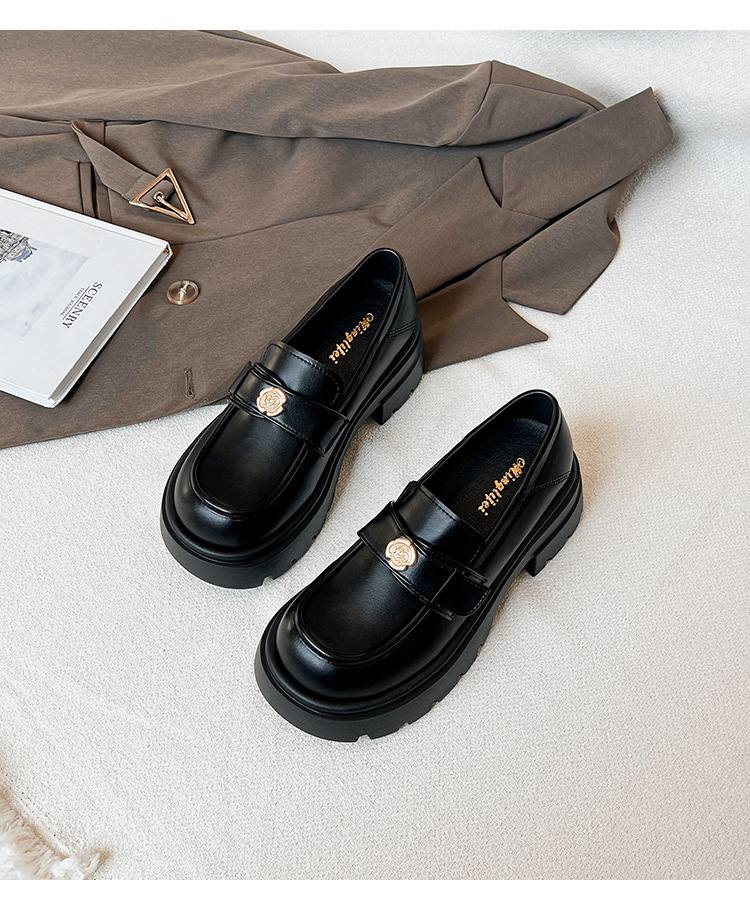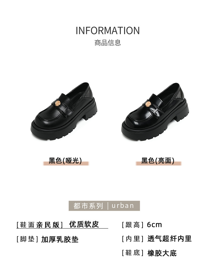 727-3 동백 두꺼운 밑창 로퍼 여성 2025 봄 신작 영국 스타일 검은색 작은 가죽 신발 슬립온 신발스토어 가기