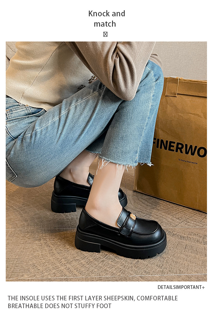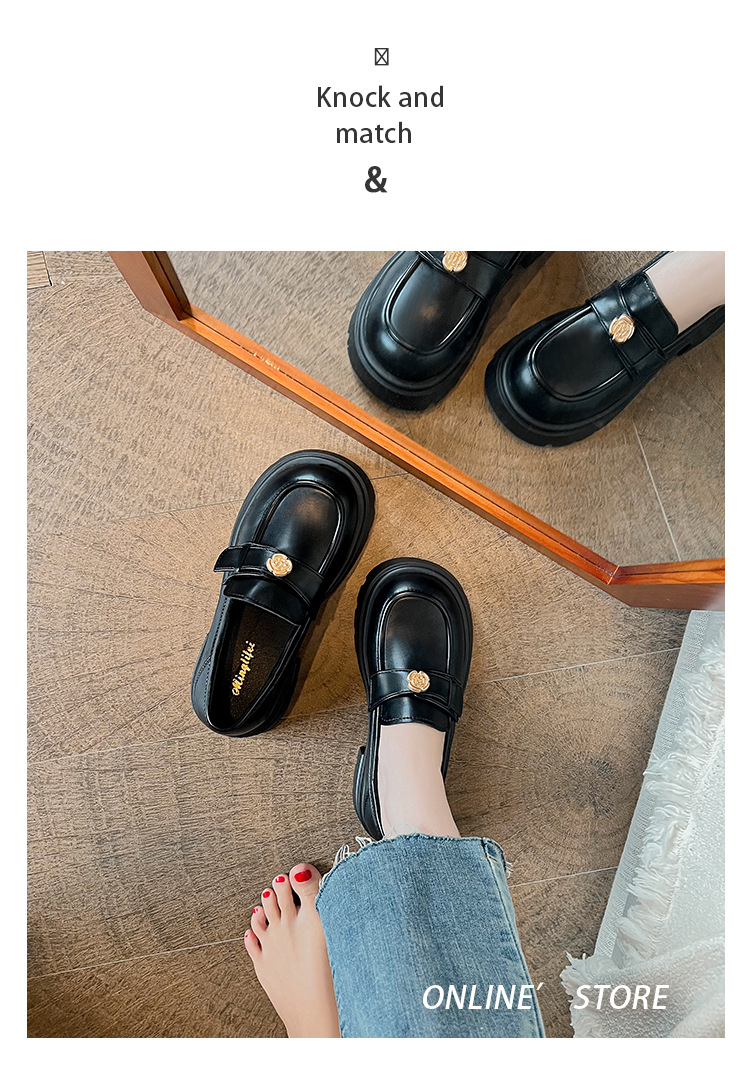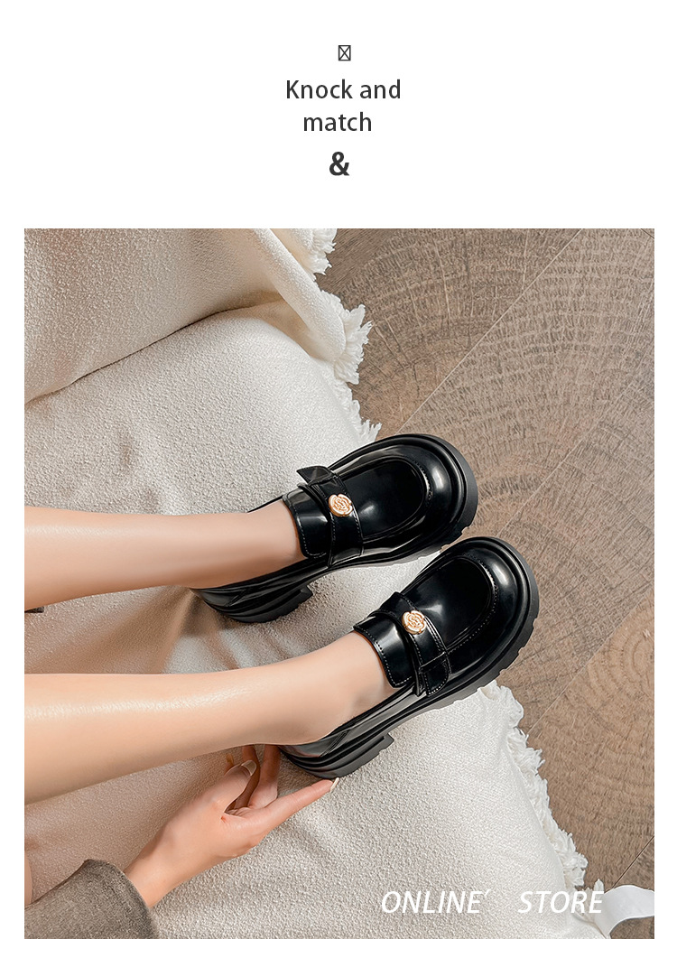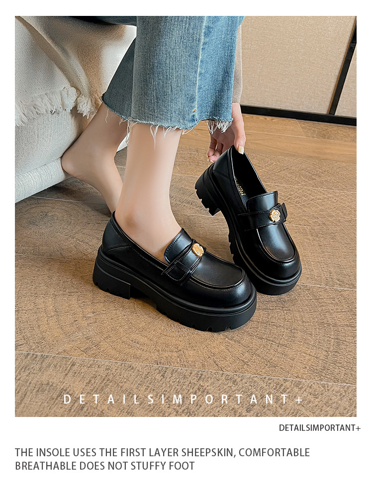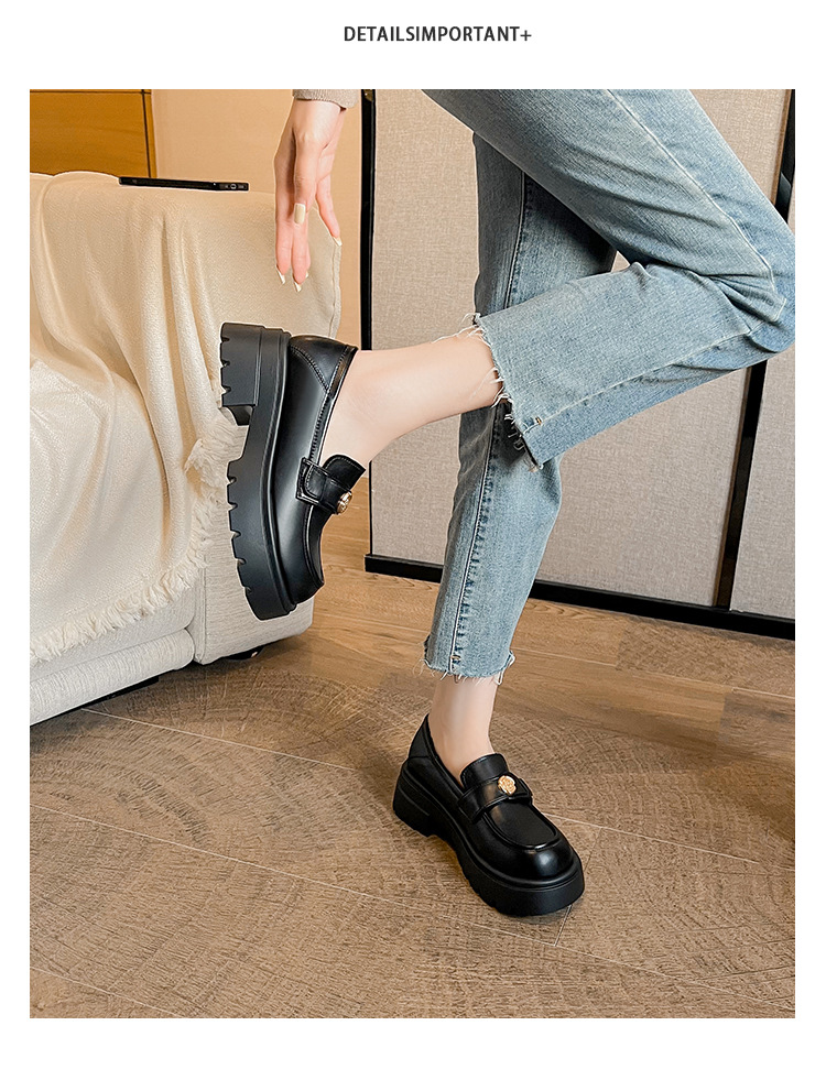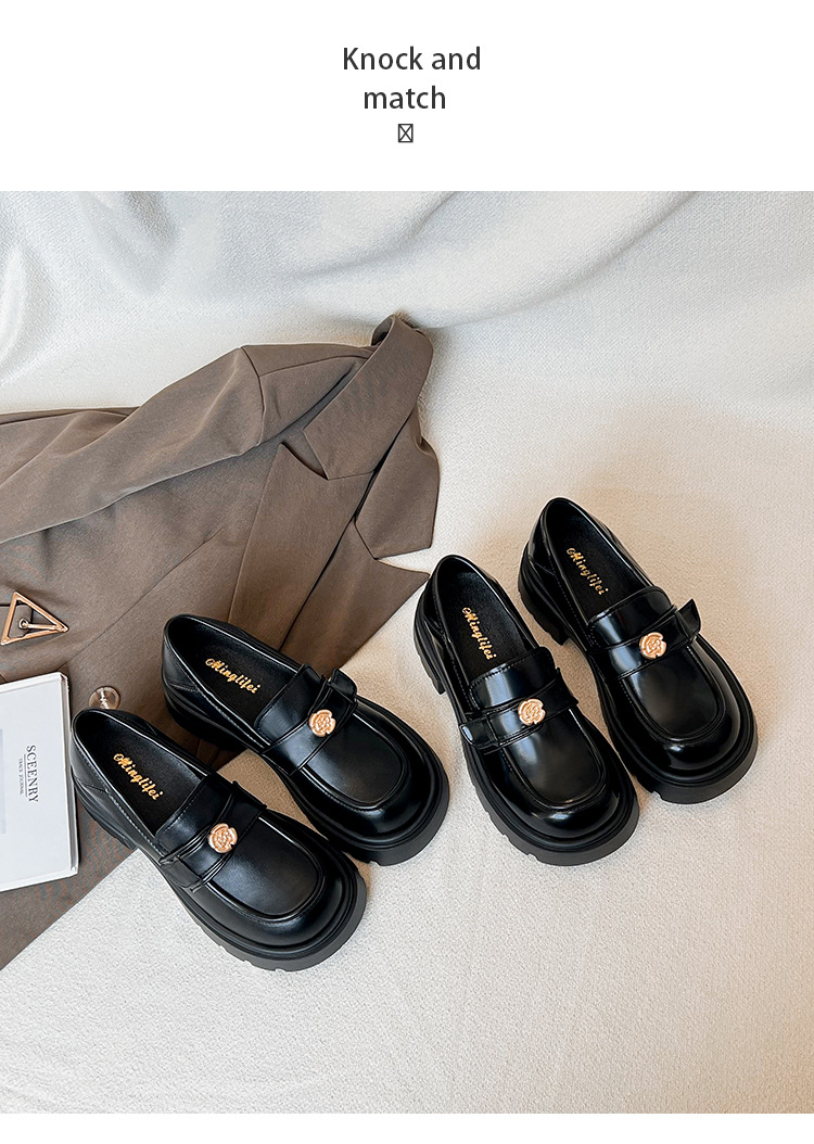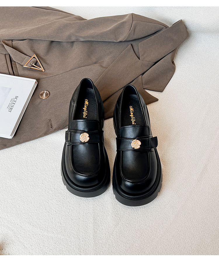 727-3 동백 두꺼운 밑창 로퍼 여성 2025 봄 신작 영국 스타일 검은색 작은 가죽 신발 슬립온 신발스토어 가기
