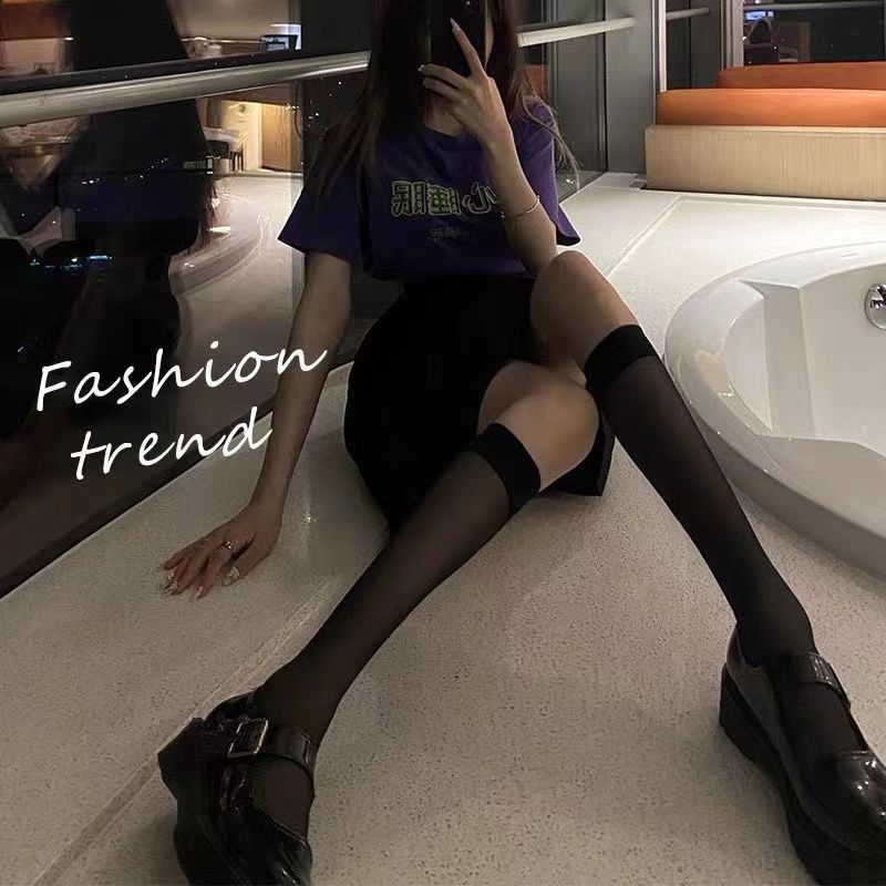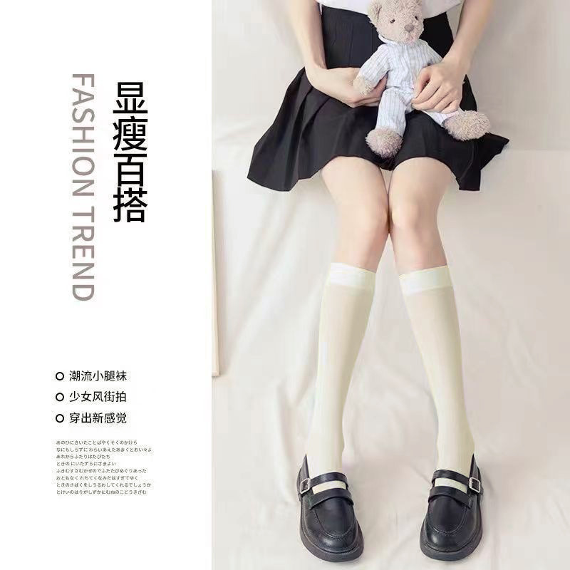 무릎 양말 위에 얇은 종아리 양말 벨벳 한국식 여성 양말 일본식 양말 여름 긴 튜브 슬리밍 높은 튜브 jk 여성용 스타킹스토어 가기