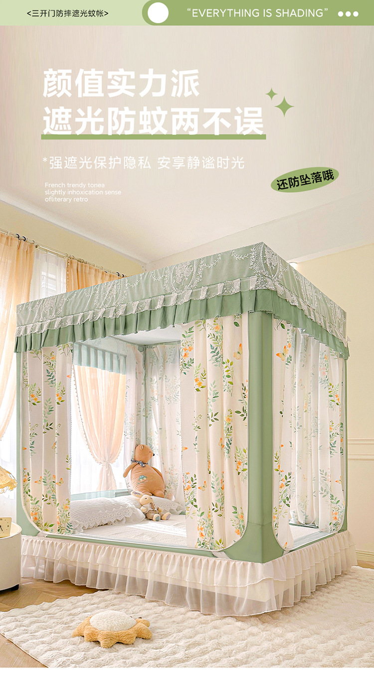 2025 새로운 음영 침대 천 커튼 모기장 사각 그물 아기 드롭 방지 모기장 가정용 침대 커튼 그늘 도매스토어 가기