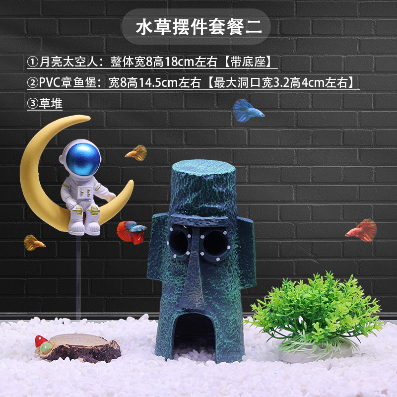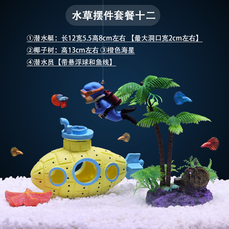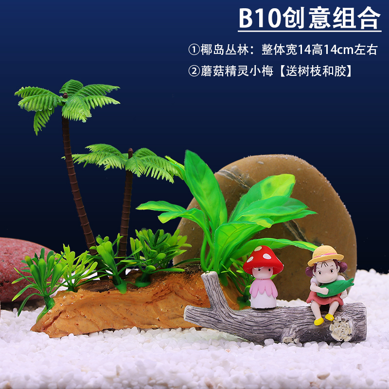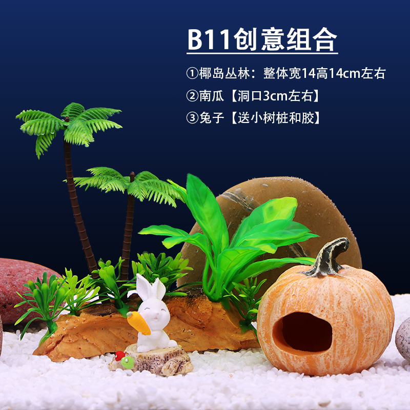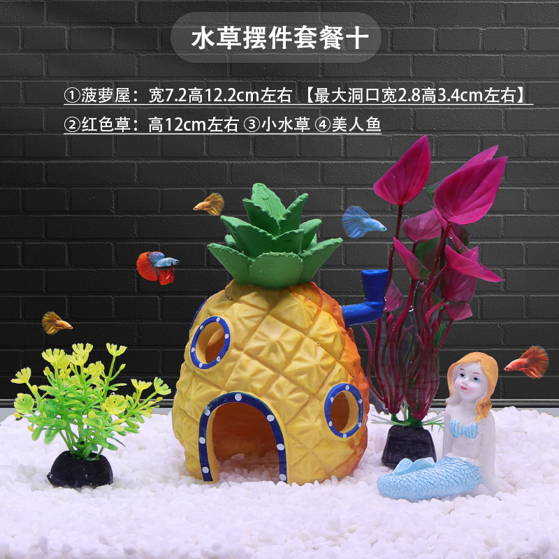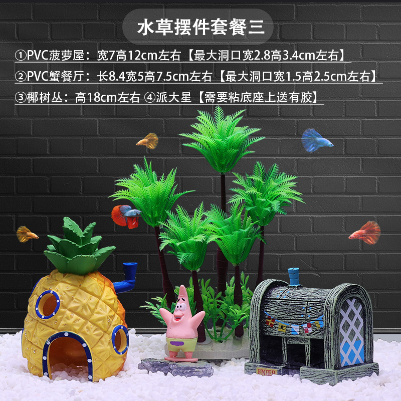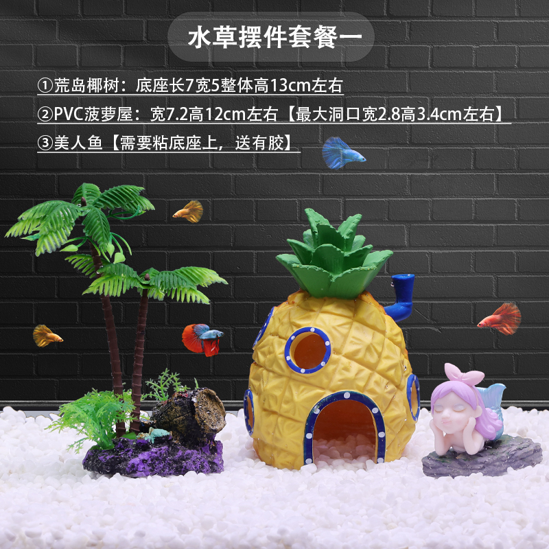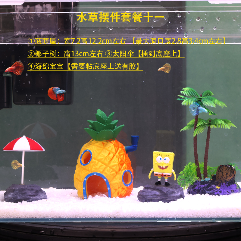 물고기 탱크 장식 조경 파인애플 하우스 장식품 스폰지 밥 풍경 보석 물 잔디 시뮬레이션 코코넛 트리 크리에이티브 전체 세트스토어 가기