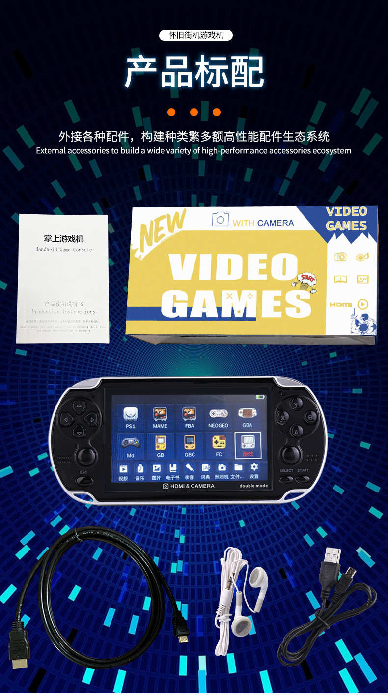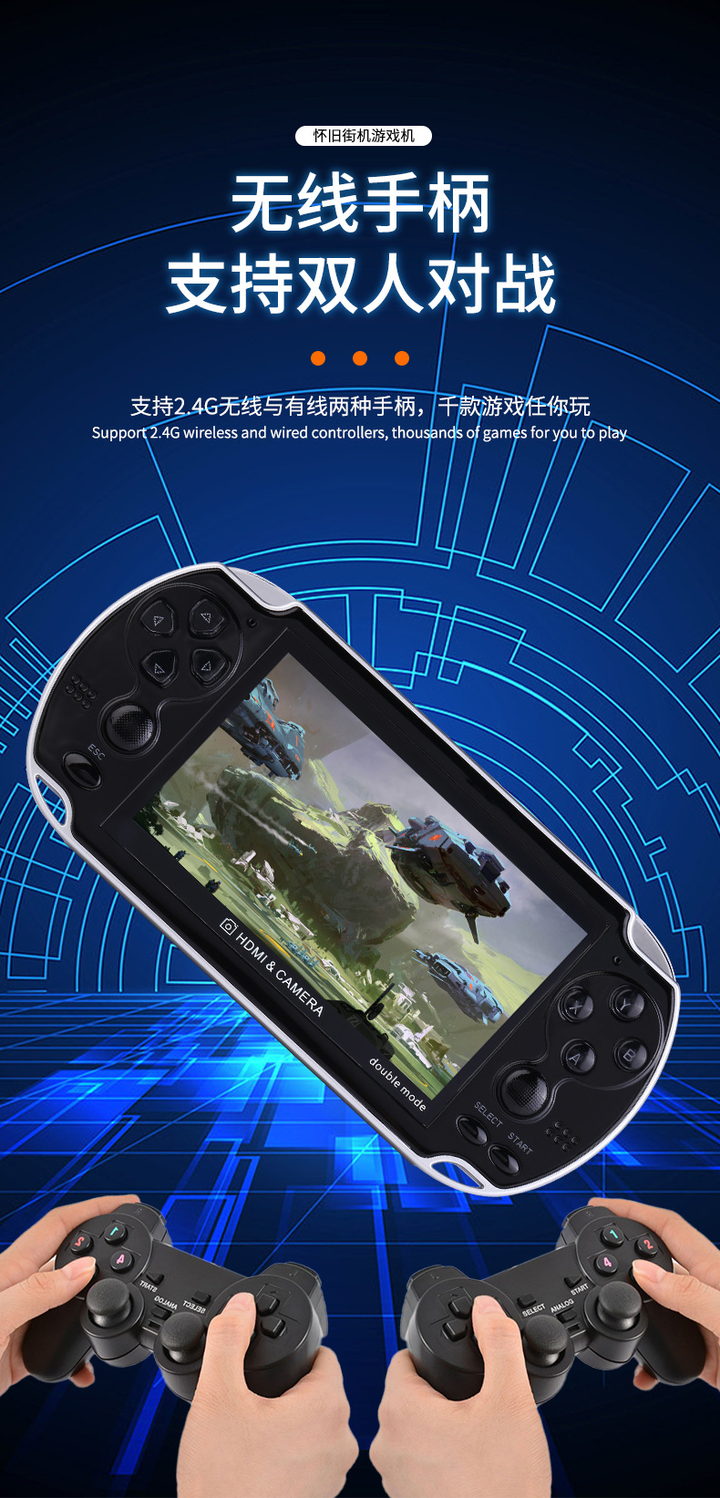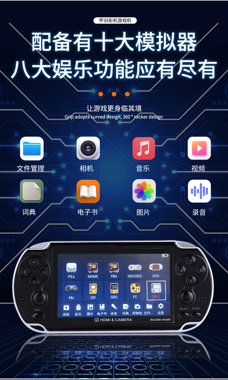 새로운 4.3 인치 A3 더블 핸드 헬드 레트로 향수 아케이드 8G 더블 로커 핸드 헬드 게임기를위한 대외 무역