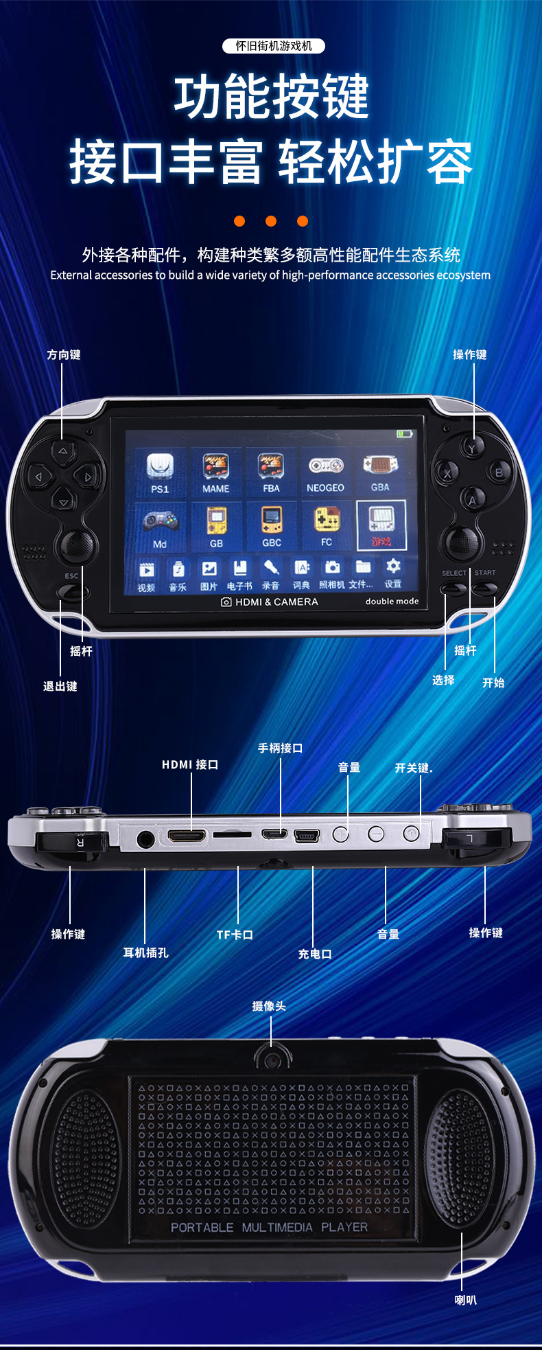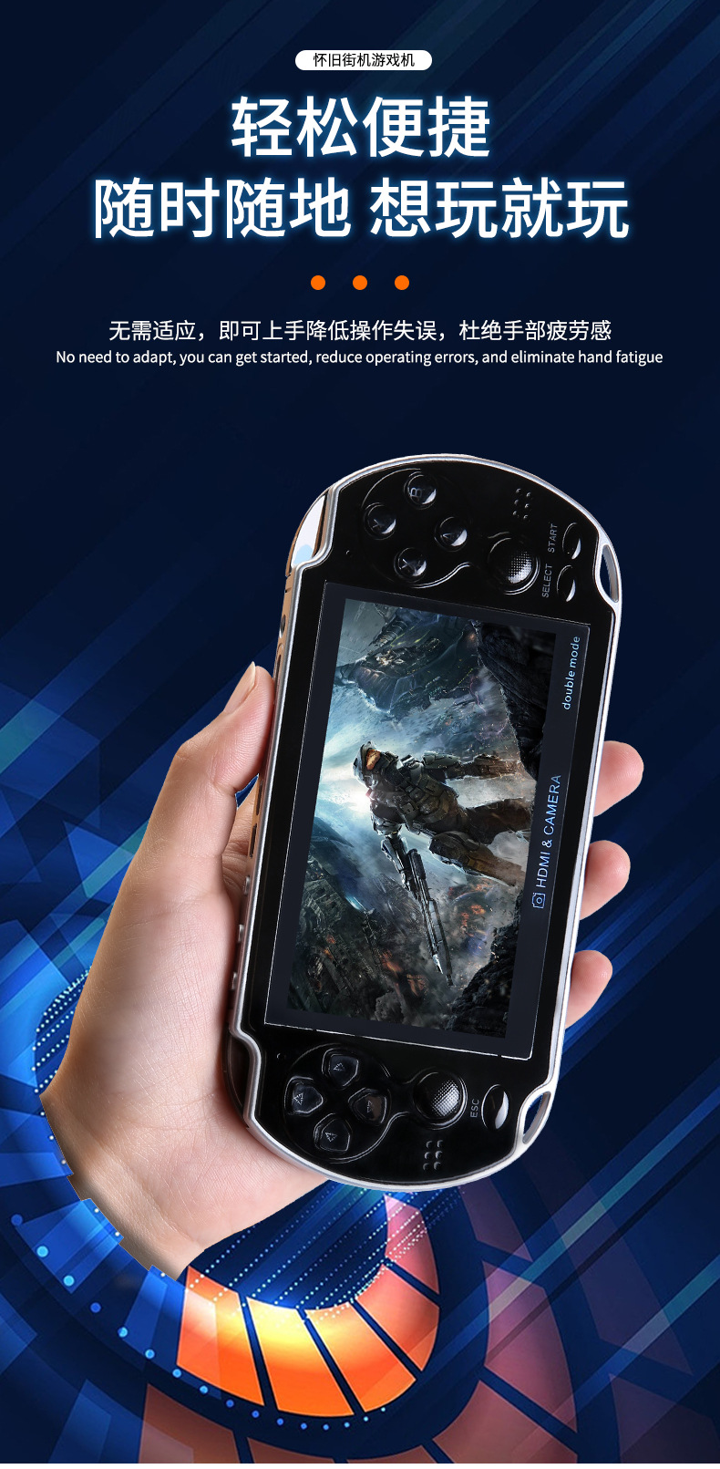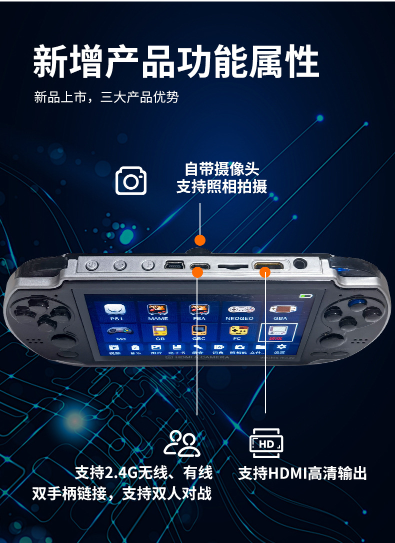 새로운 4.3 인치 A3 더블 핸드 헬드 레트로 향수 아케이드 8G 더블 로커 핸드 헬드 게임기를위한 대외 무역