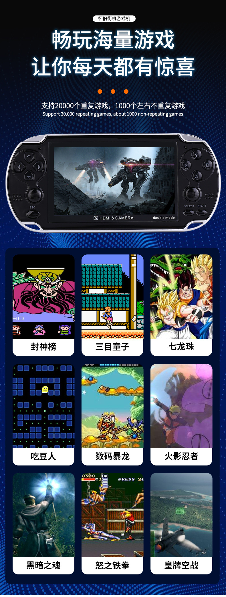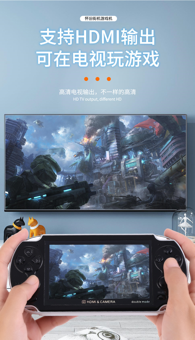새로운 4.3 인치 A3 더블 핸드 헬드 레트로 향수 아케이드 8G 더블 로커 핸드 헬드 게임기를위한 대외 무역스토어 가기