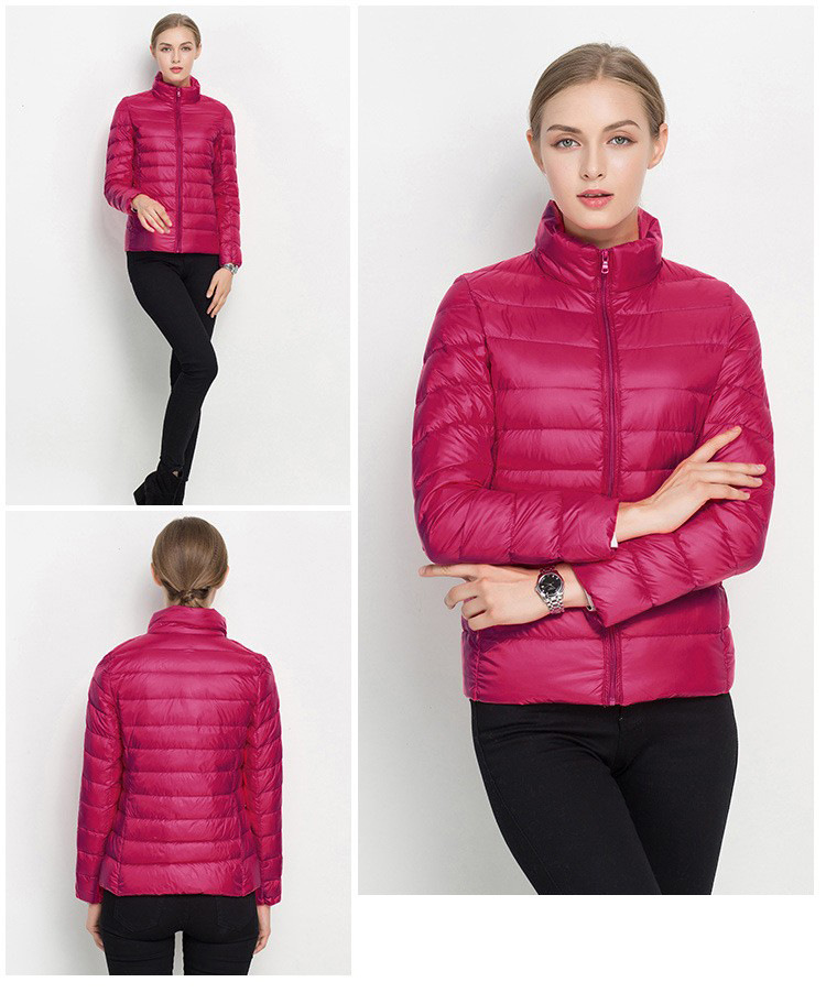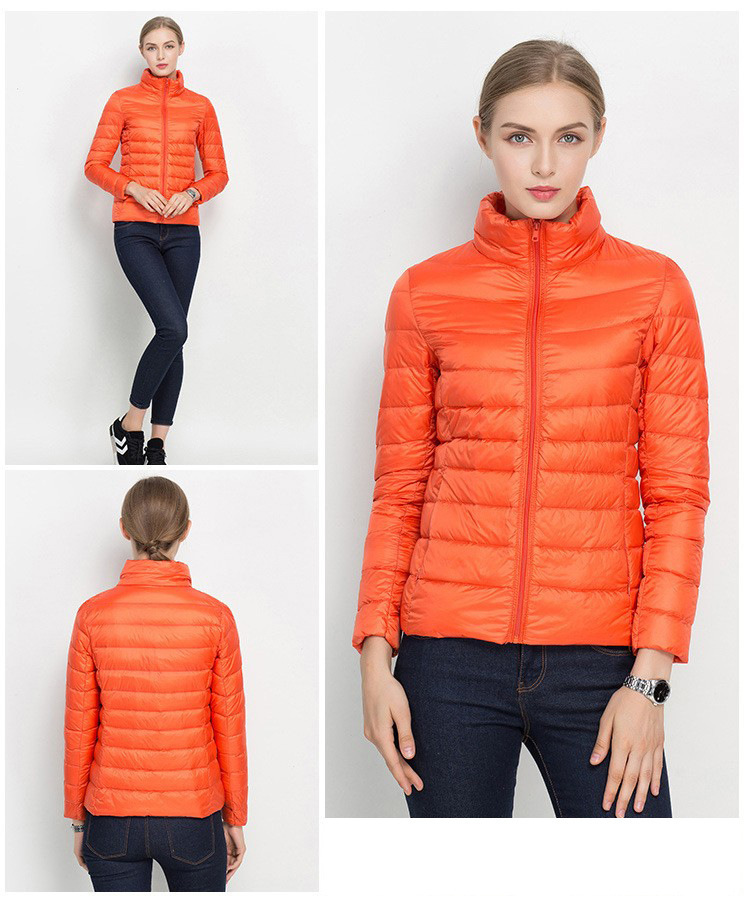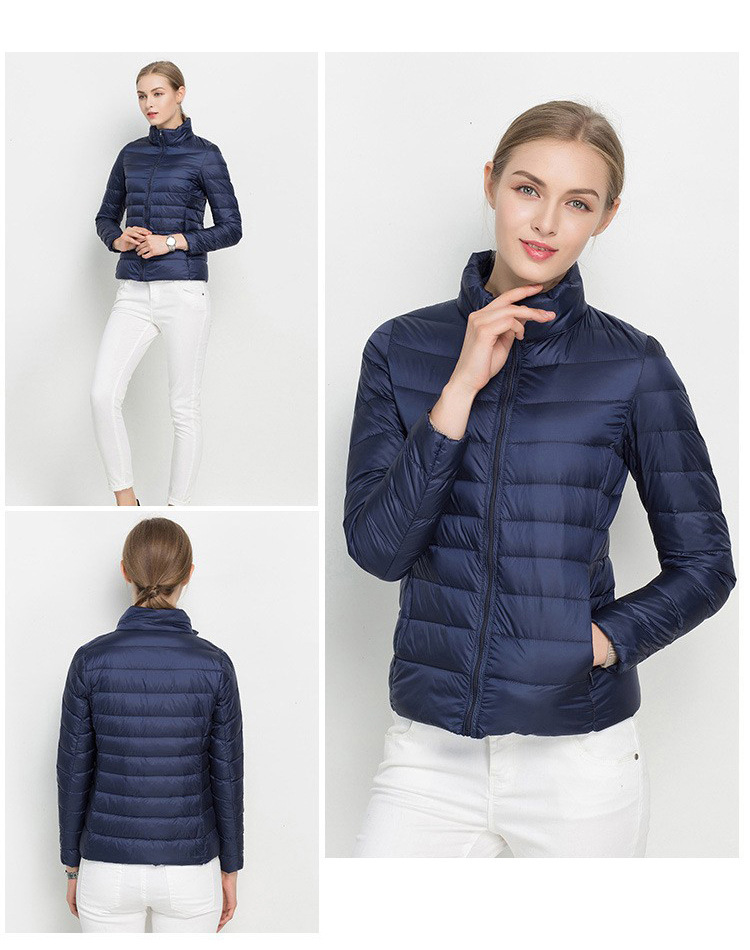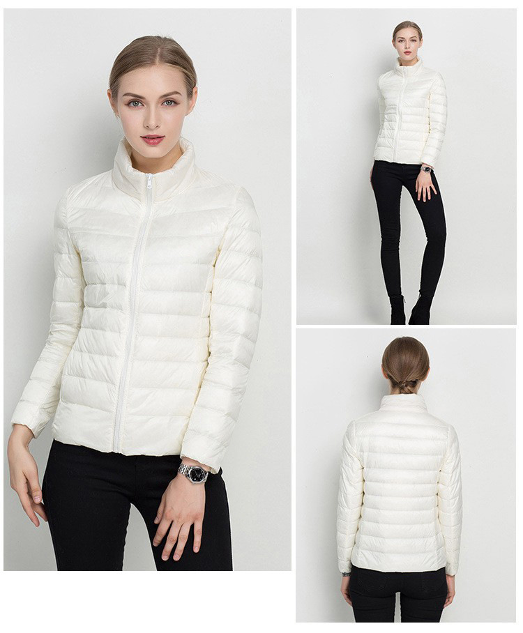 여자 겨울 코트 2024 가을 겨울 패션 경량 화이트 오리 다운 칼라 슬림 핏 여성용 겨울 다운 코트스토어 가기