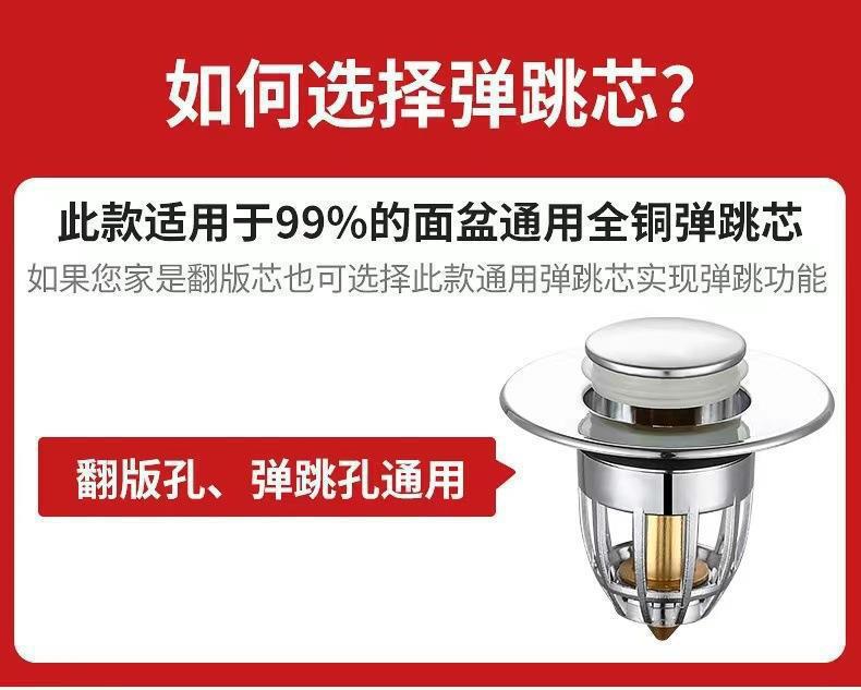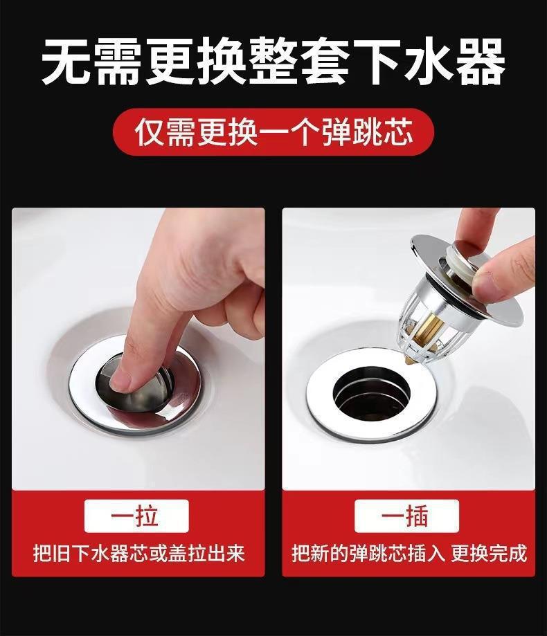 洗手盆脸池漏水塞子面盆弹跳芯下水器通用配件按压式防返臭小神器