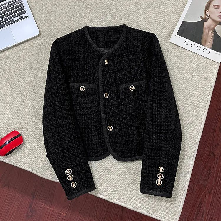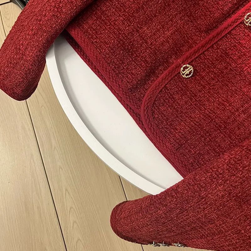 트위드 레드 샤넬 스타일 코트 여성 2024 가을과 겨울 새로운 스타일 사교계 프랑스 쇼트 탑스토어 가기