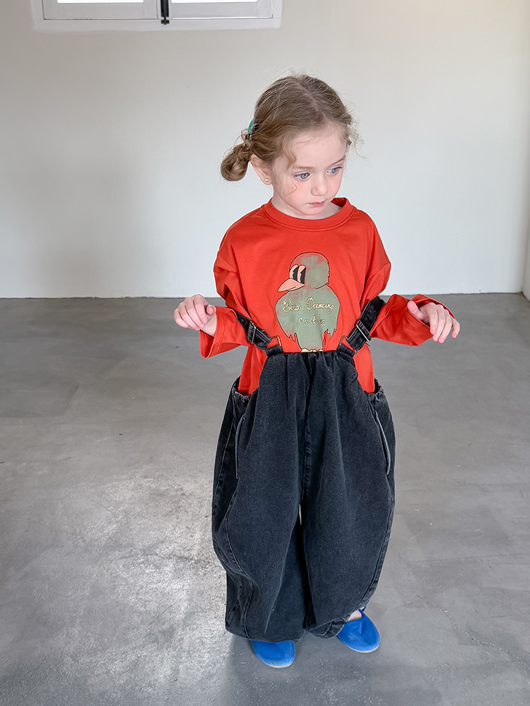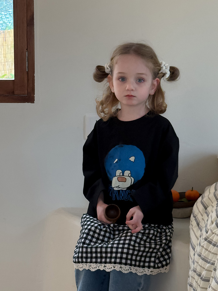 어린이 만화 멀티 컬러 티셔츠 2025 봄과 여름 새로운 한국어 스타일 소년과 소녀 만화 패턴 긴 소매 라운드 넥 티셔츠스토어 가기