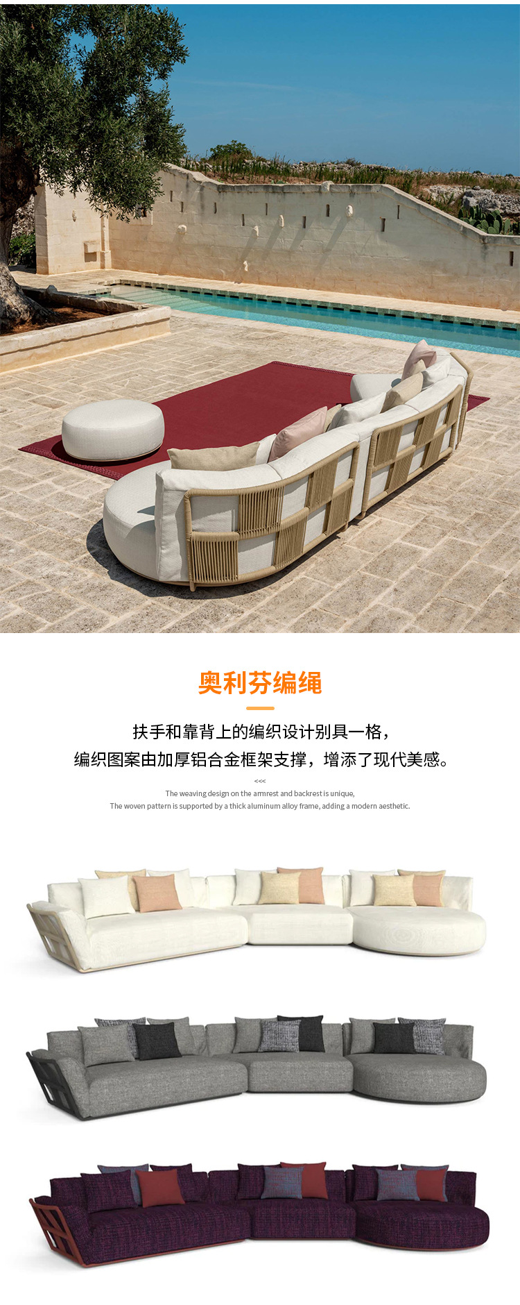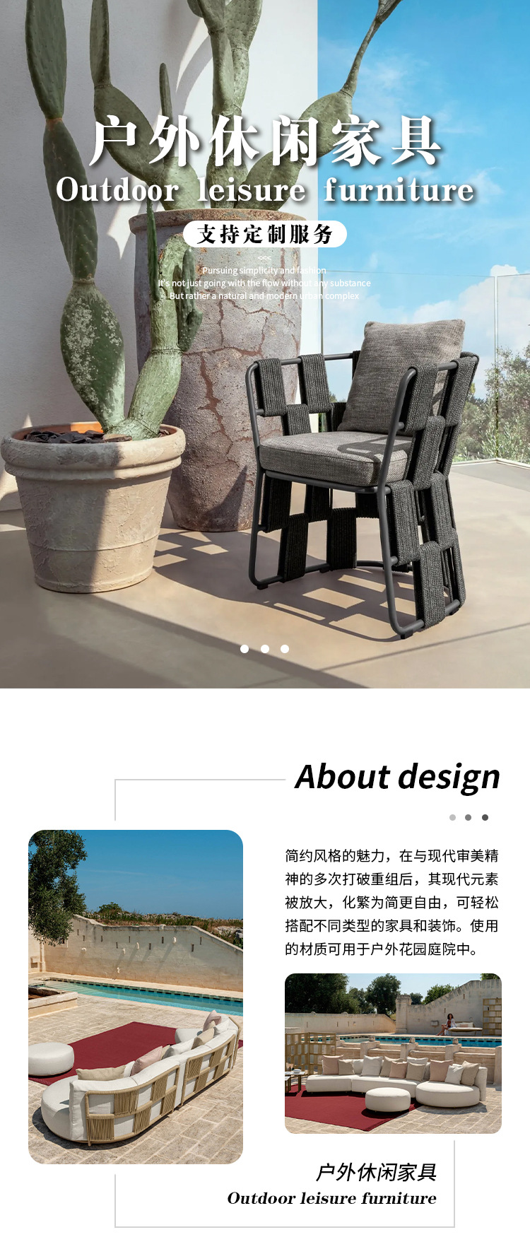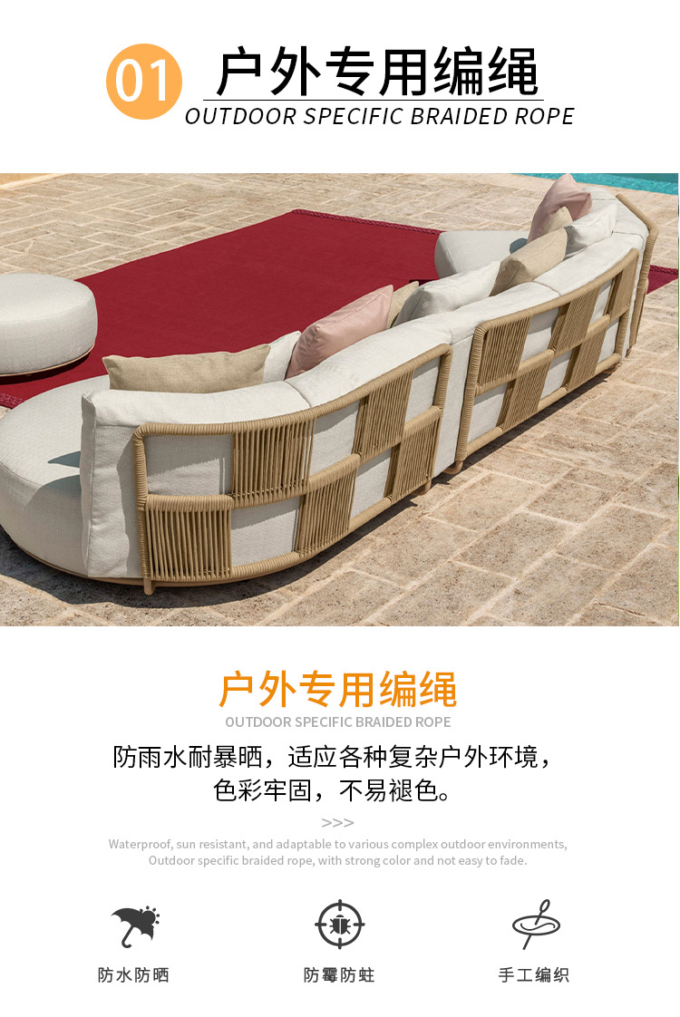 북유럽 야외 소파 레저 침대 파티오 등나무 침대 커피 테이블 조합 빌라 호텔 가든 디자이너