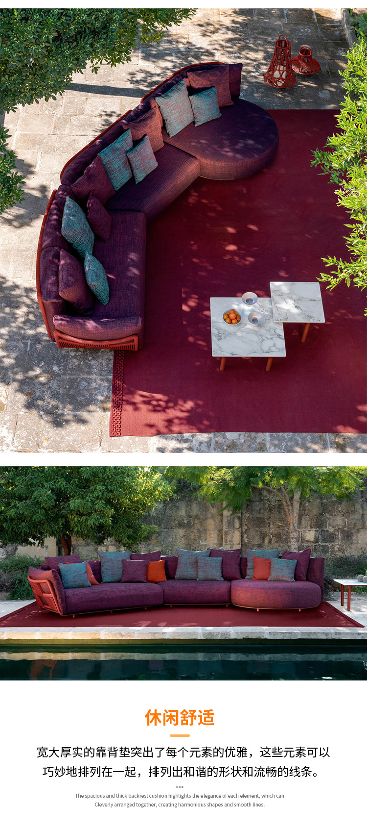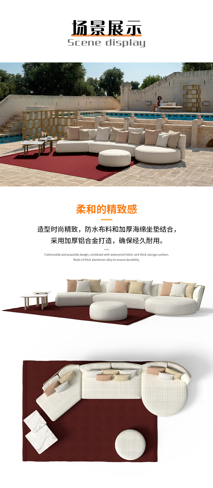 • [조합 2] 팔걸이 소파 + 곡선형 소파 + 곡선형 황실 첩 + 원형 테이블