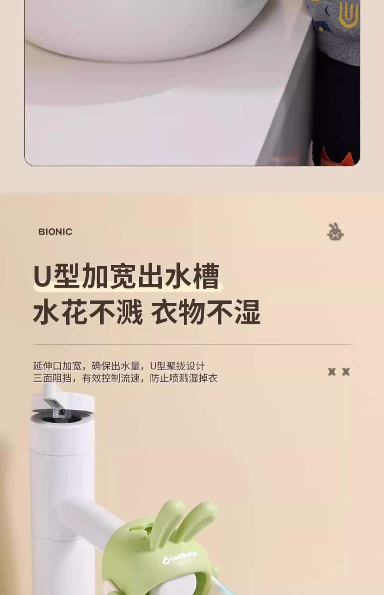 • [물 전환기] 귀여운 토끼 녹색 + 노란색 (수도꼭지 99%에 적합)