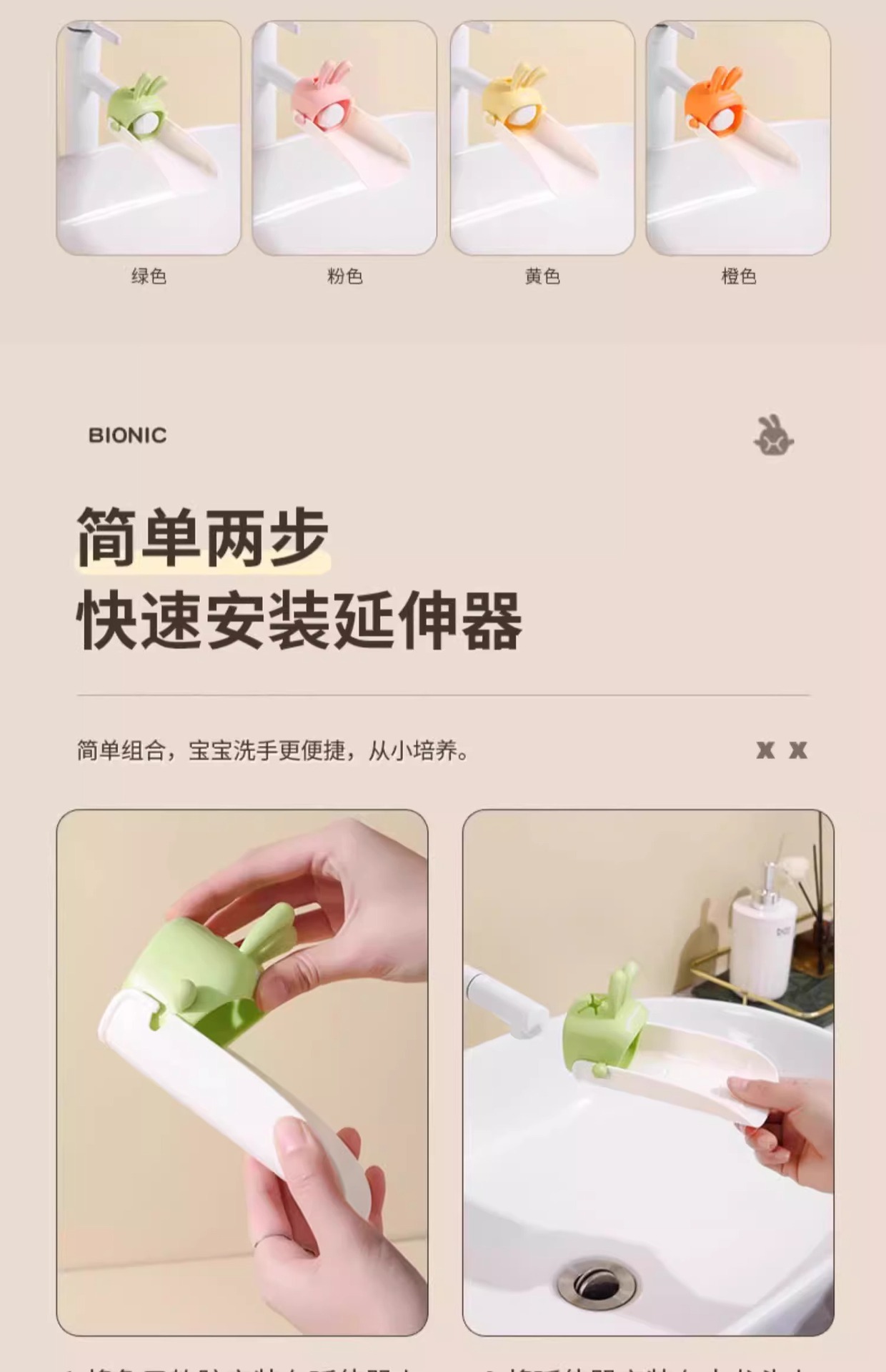• [물 전환기] 귀여운 토끼 노란색 + 주황색 (수도꼭지 99%에 적합)