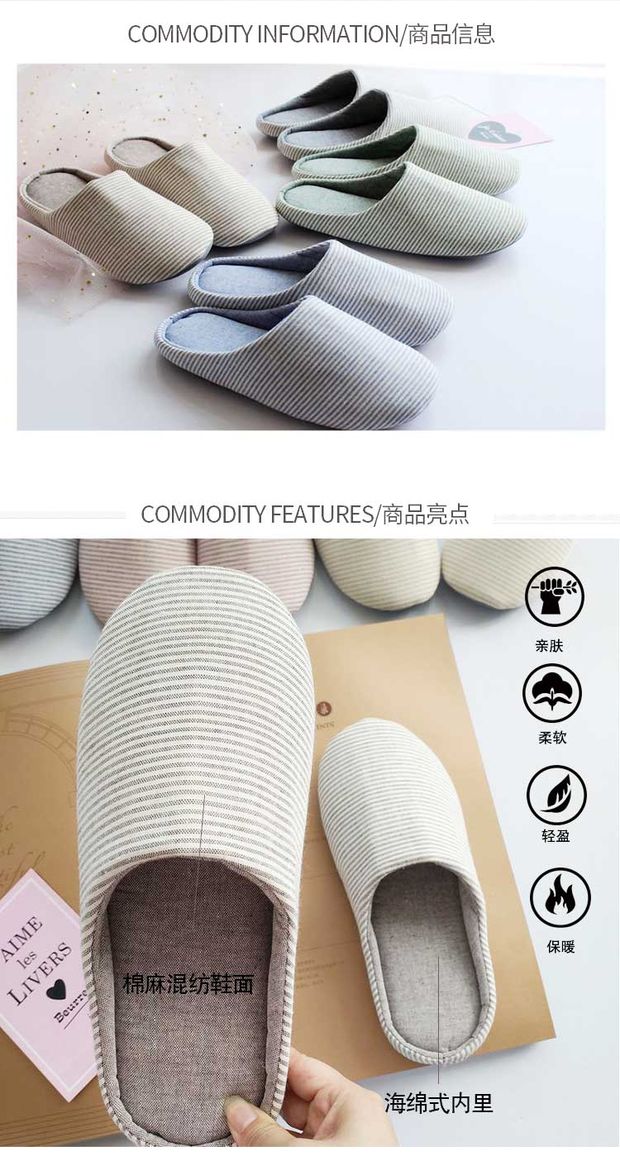 일본식 면화 슬리퍼 여성 봄 가을 겨울 커플 홈 실내 나무 바닥 부드러운 천 바닥 음소거 방지 면화 리넨 슬리퍼 남성용스토어 가기