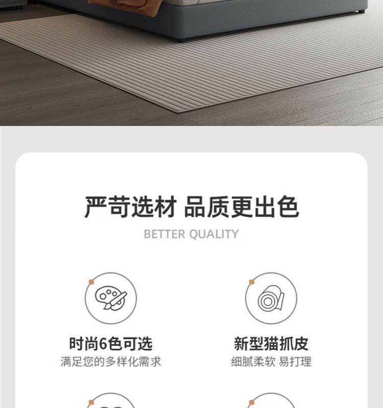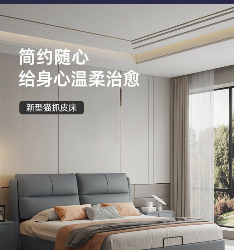 고양이 피부 현대 간단한 프랑스 마스터 침실 웨딩 침대 1.8m 가벼운 럭셔리 더블 침대 새로운 저장 작은 아파트 부드러운 가방 침대스토어 가기
