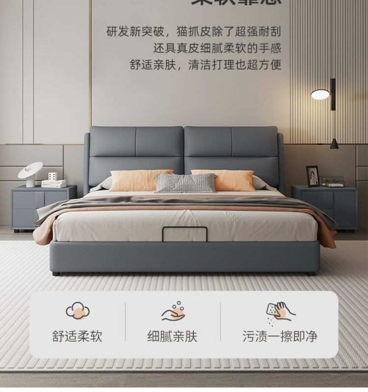 고양이 피부 현대 간단한 프랑스 마스터 침실 웨딩 침대 1.8m 가벼운 럭셔리 더블 침대 새로운 저장 작은 아파트 부드러운 가방 침대
