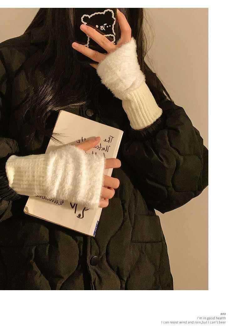 여성을위한 하프 핑거 모피 장갑 겨울 겨울 화이트 모피 플러시 오픈 핑거 솔리드 컬러 따뜻한 플러스 벨벳 긴 소매스토어 가기