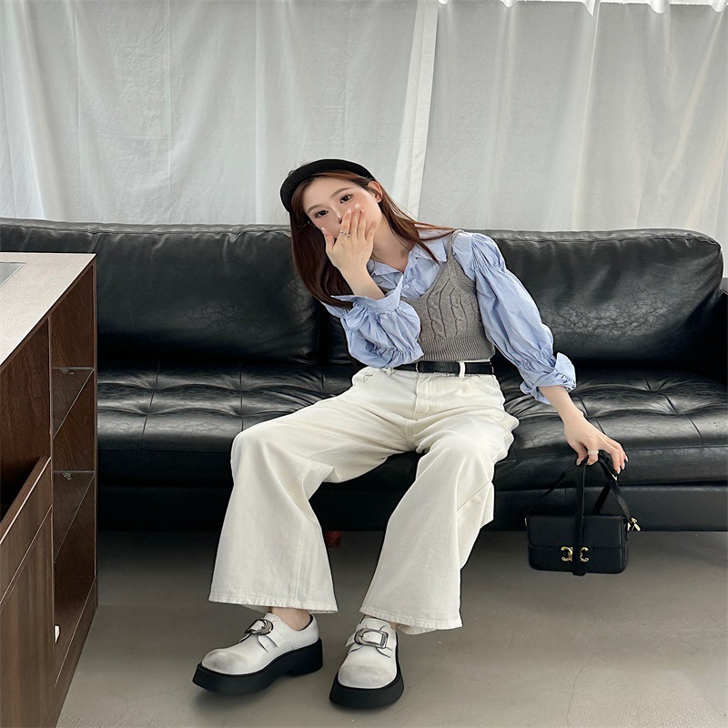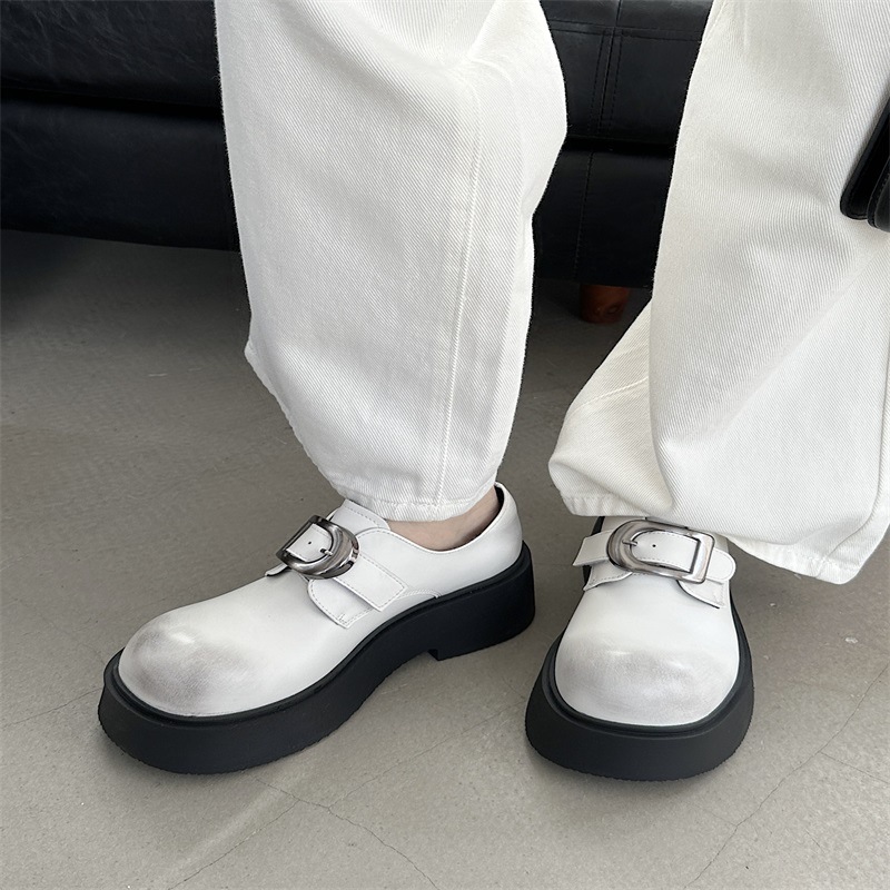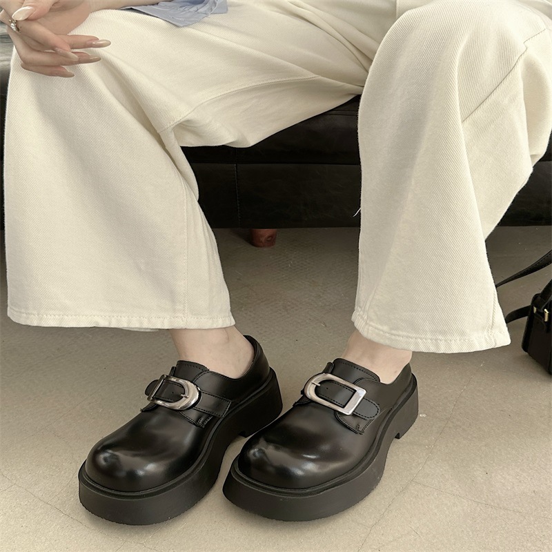 작은 1 단계 큰 발가락 신발 라운드 영국 스타일의 단층 신발 로퍼 작은 가죽 신발 플랫폼 슈즈를위한 두꺼운 밑창 고조 신발스토어 가기