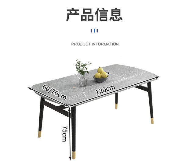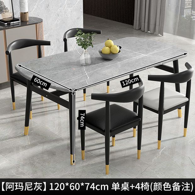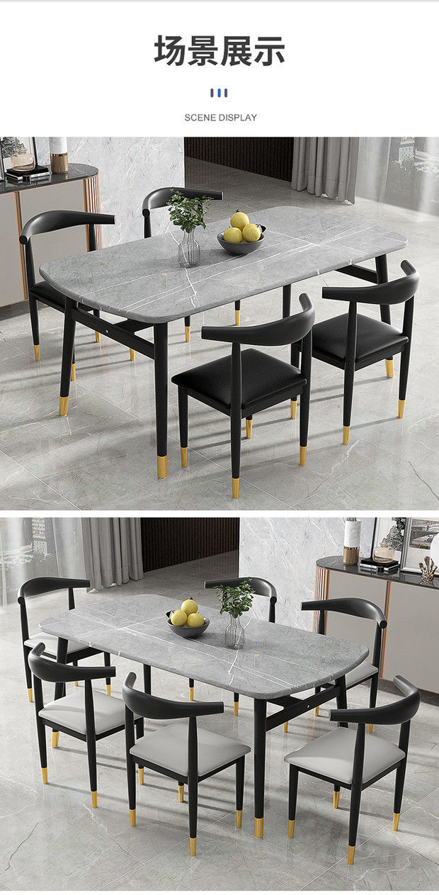 • 길이 120, 폭 70, 마니 그레이, 블랙 골드 다리, 의자 6개, 나무판