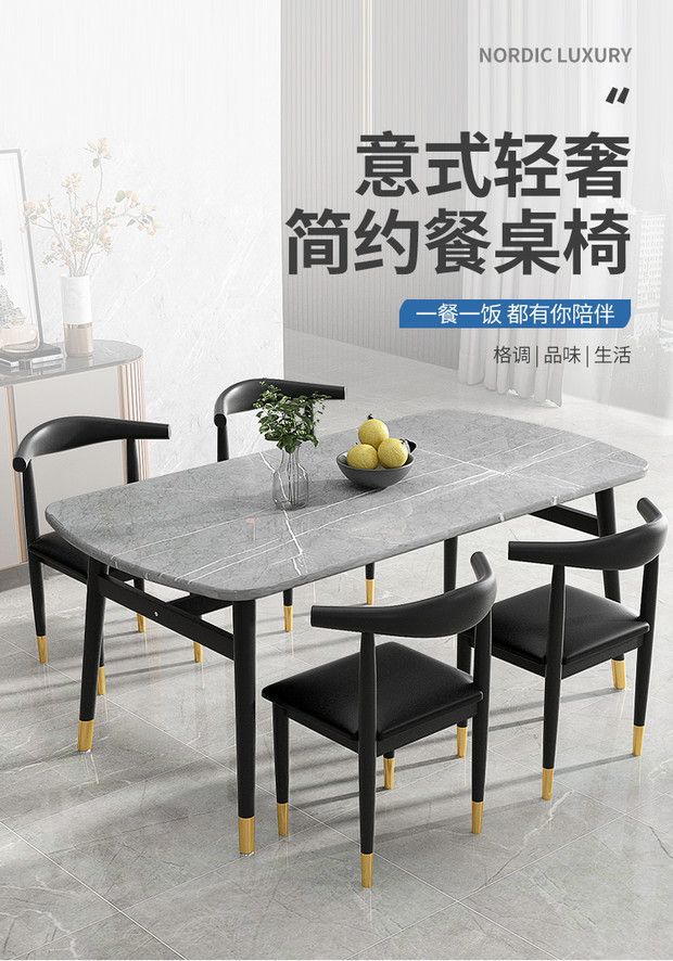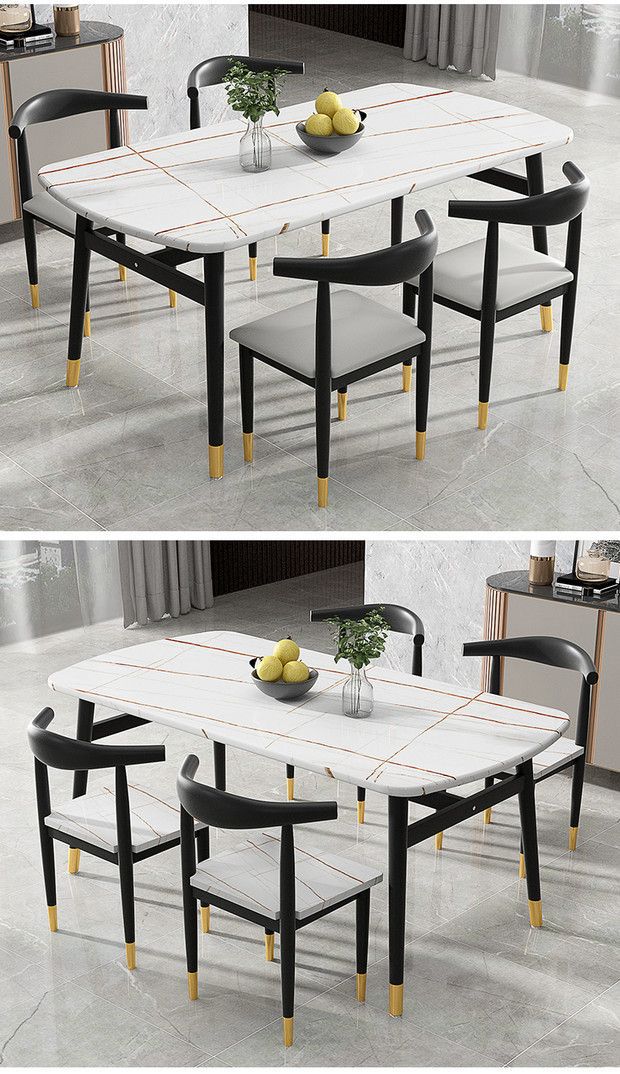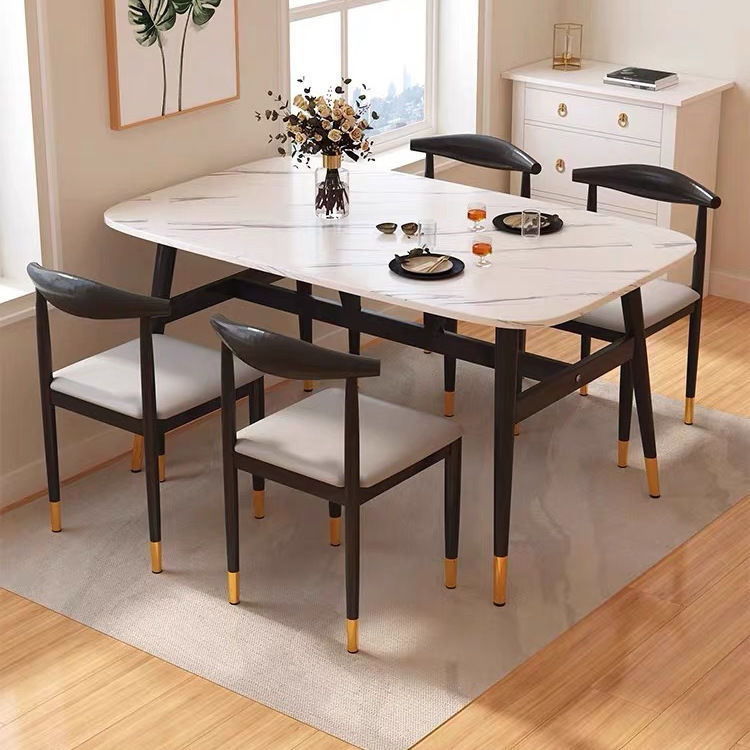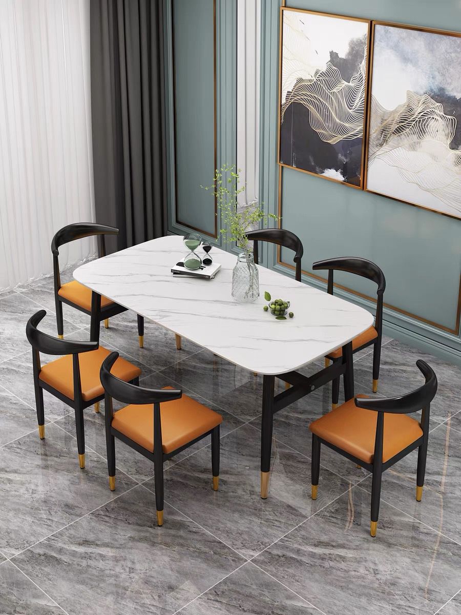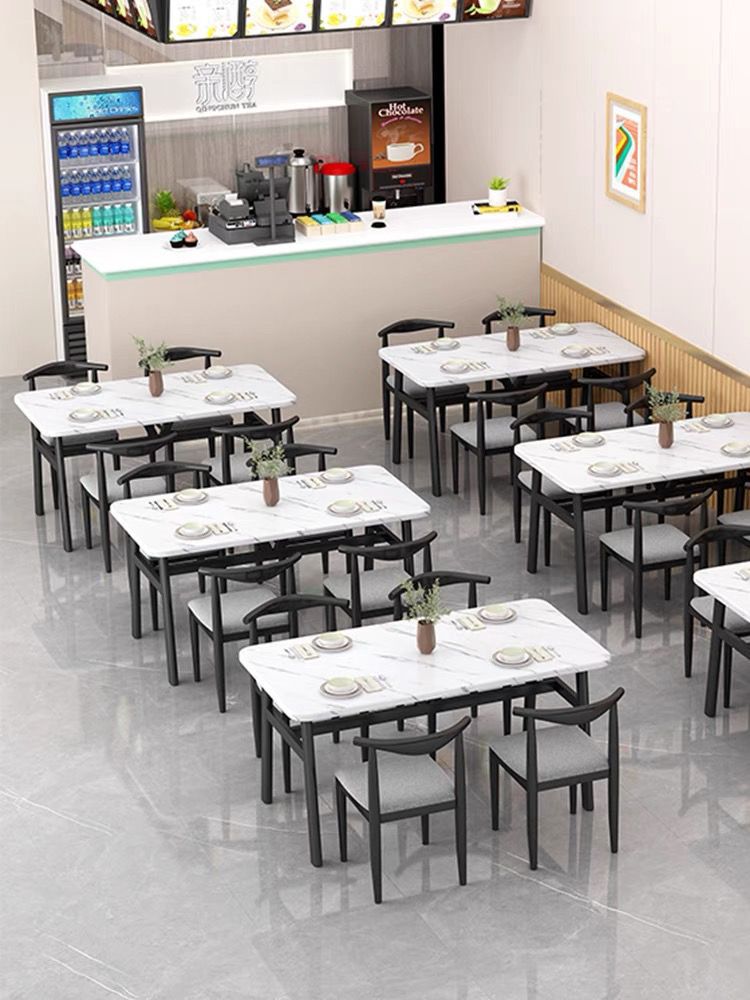가벼운 고급 모조 대리석 상업 식탁 직사각형 식탁 벽 렌탈 룸 호텔 낙서 레스토랑 식탁 및 의자 조합스토어 가기