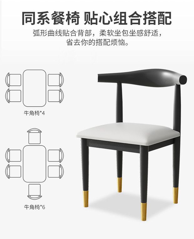 • 길이 120, 폭 70, 마니 그레이, 블랙 골드 다리, 의자 6개, 소프트백