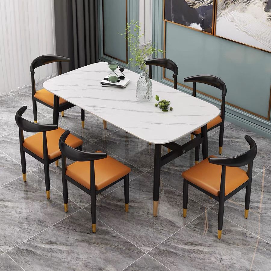 • 길이 120 폭 70 달리 블랙 골드 다리 오렌지 의자 6개