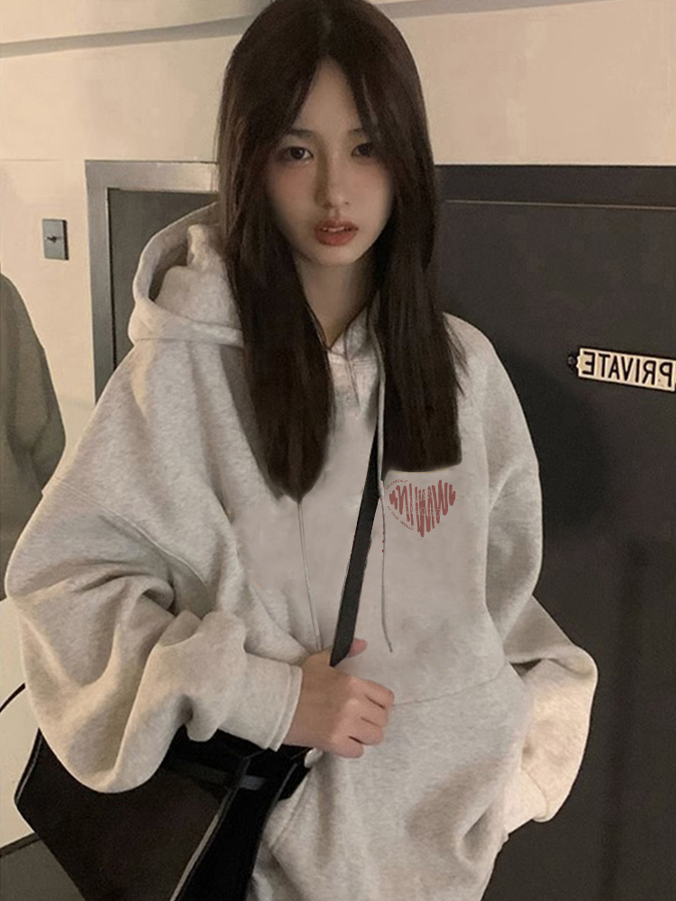 2024 새로운 패션 브랜드 무거운 여성 스웨트 셔츠 가을과 겨울 기모 두꺼운 게으른 스타일 콜드 스타일 후드 자켓