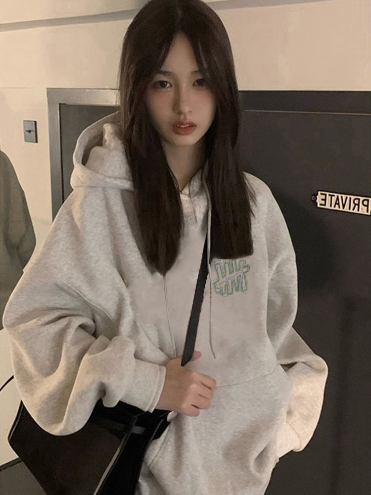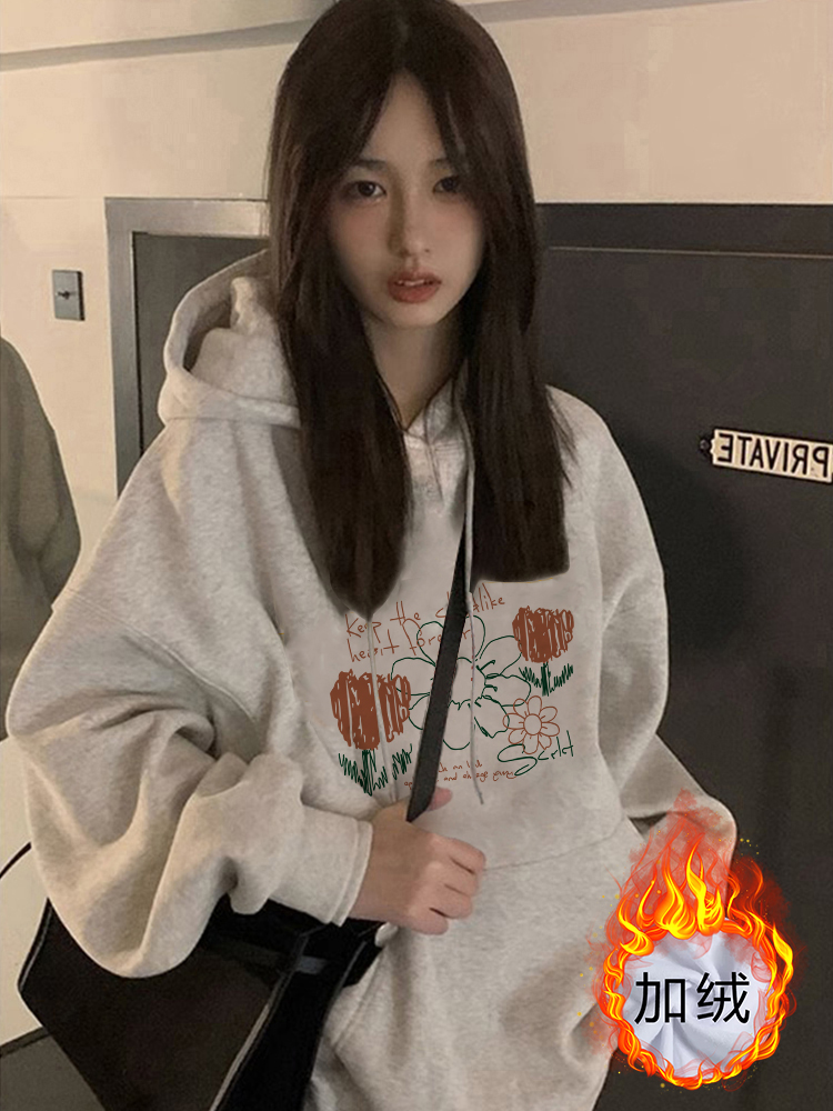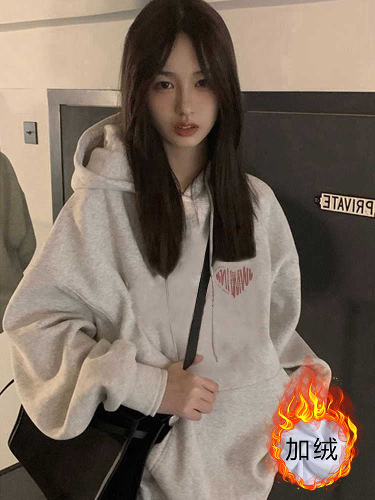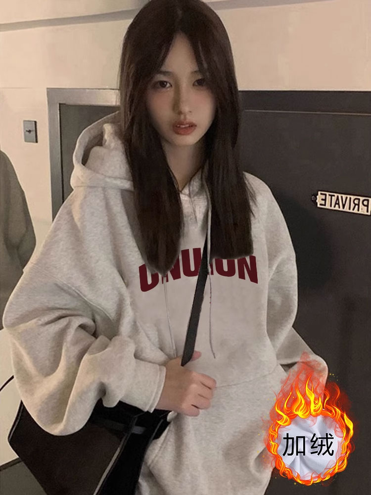 2024 새로운 패션 브랜드 무거운 여성 스웨트 셔츠 가을과 겨울 기모 두꺼운 게으른 스타일 콜드 스타일 후드 자켓스토어 가기