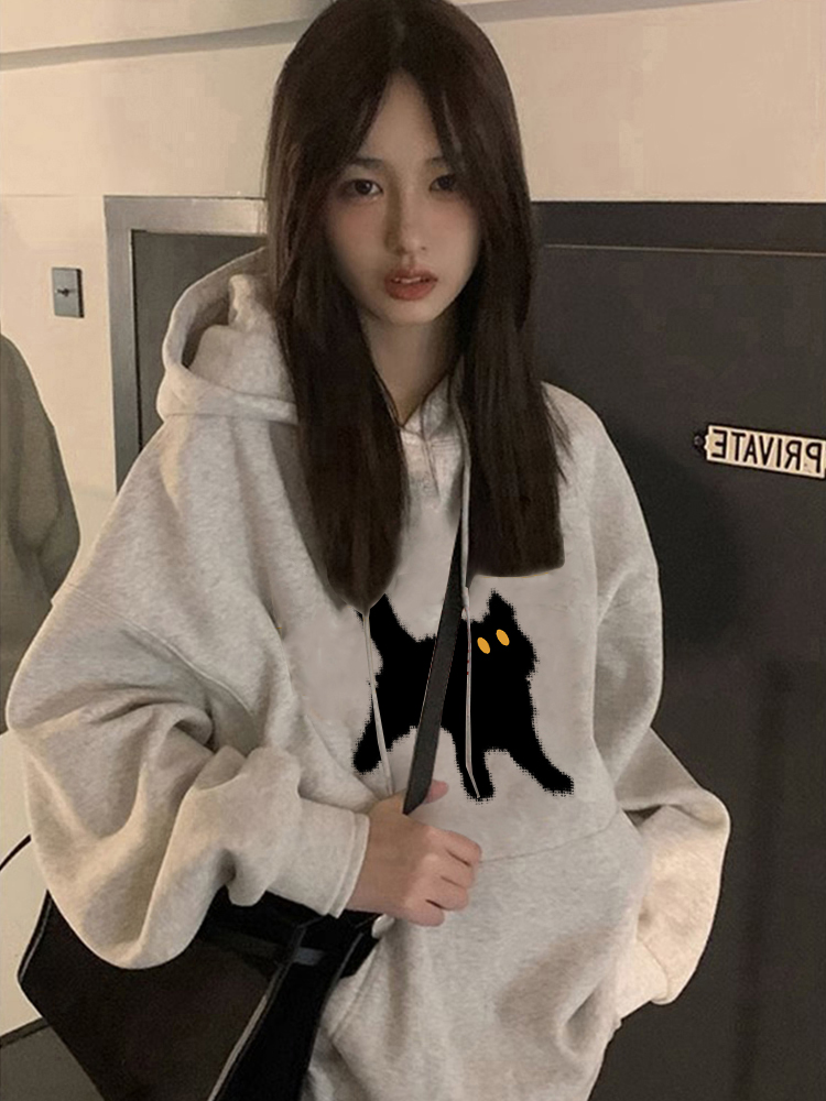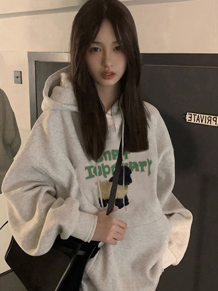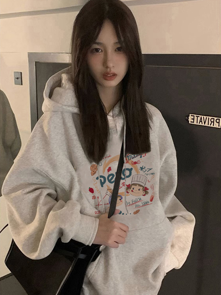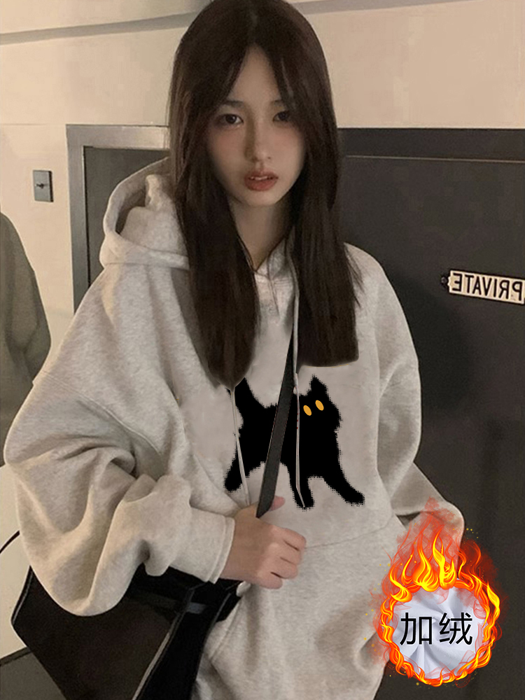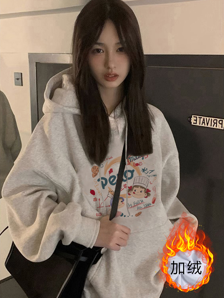 2024 새로운 패션 브랜드 무거운 여성 스웨트 셔츠 가을과 겨울 기모 두꺼운 게으른 스타일 콜드 스타일 후드 자켓스토어 가기