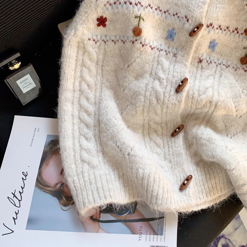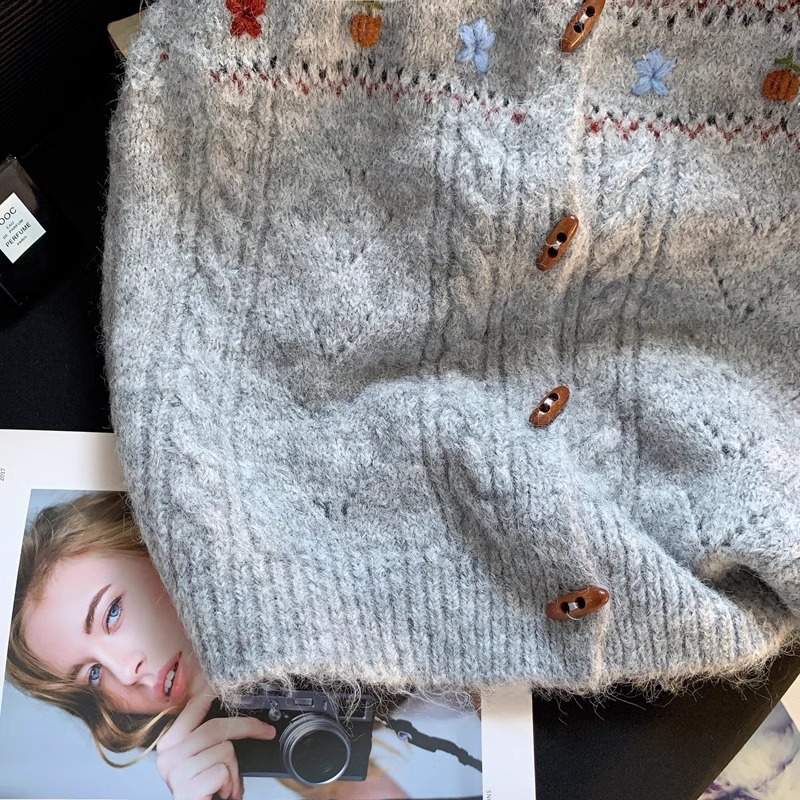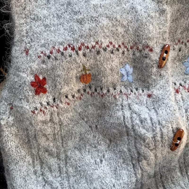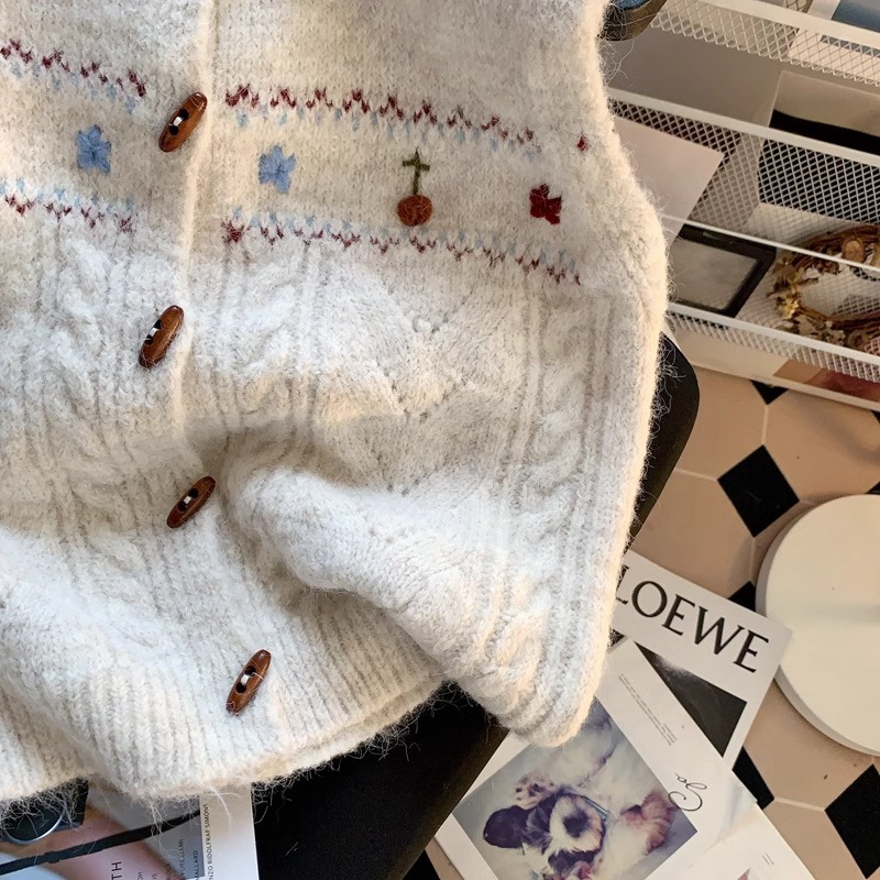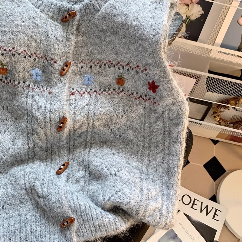 빈티지 니트 조끼 여성 수제 꽃 스웨터 웨이스트 코트 조끼 라운드 넥 스택 달콤한 자카드 조끼 올 매치 트렌디스토어 가기