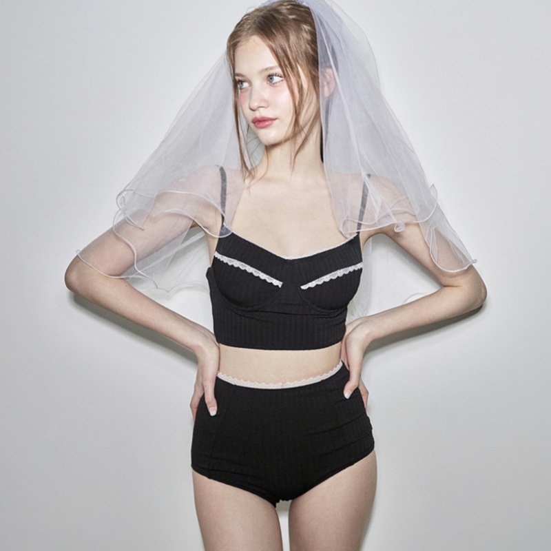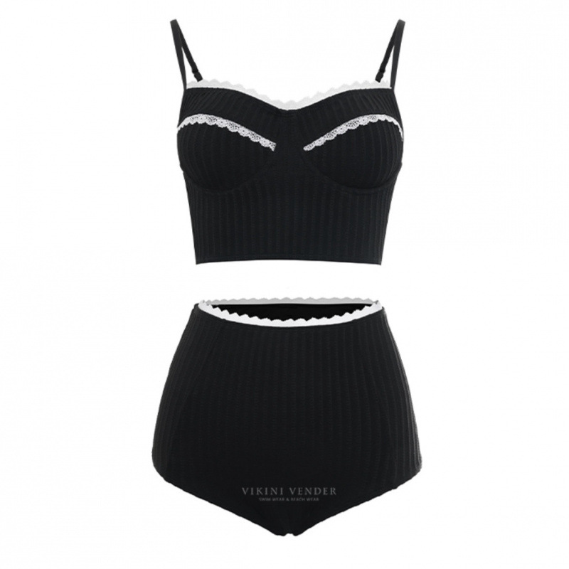 새로운 프랑스 소녀 솔리드 컬러 더블 숄더 스트랩 레트로 간단한 높은 허리 배꼽 커버 슬리밍 섹시 백리스 스플릿 비키니스토어 가기