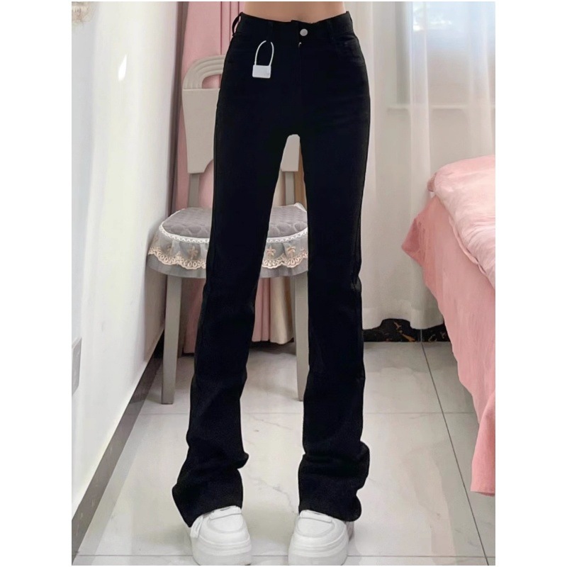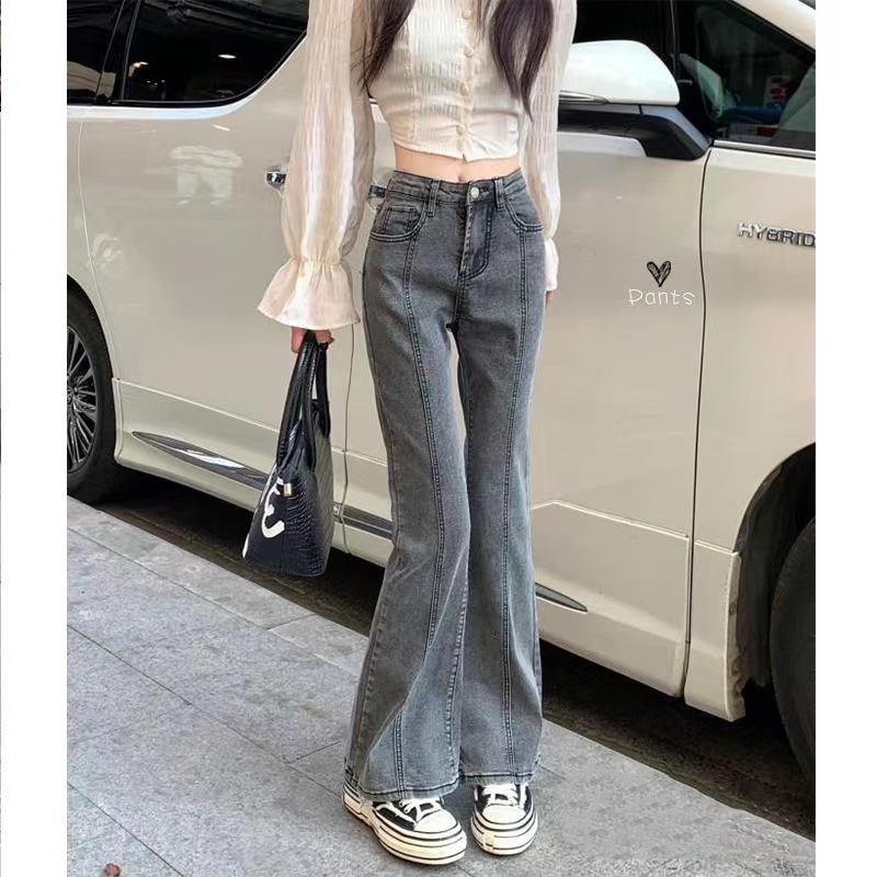 1 키가 큰 마이크로 플레어 청바지 여성의 가을 높은 허리 스트레치 슬림 핏 슬리밍 말굽 바지스토어 가기