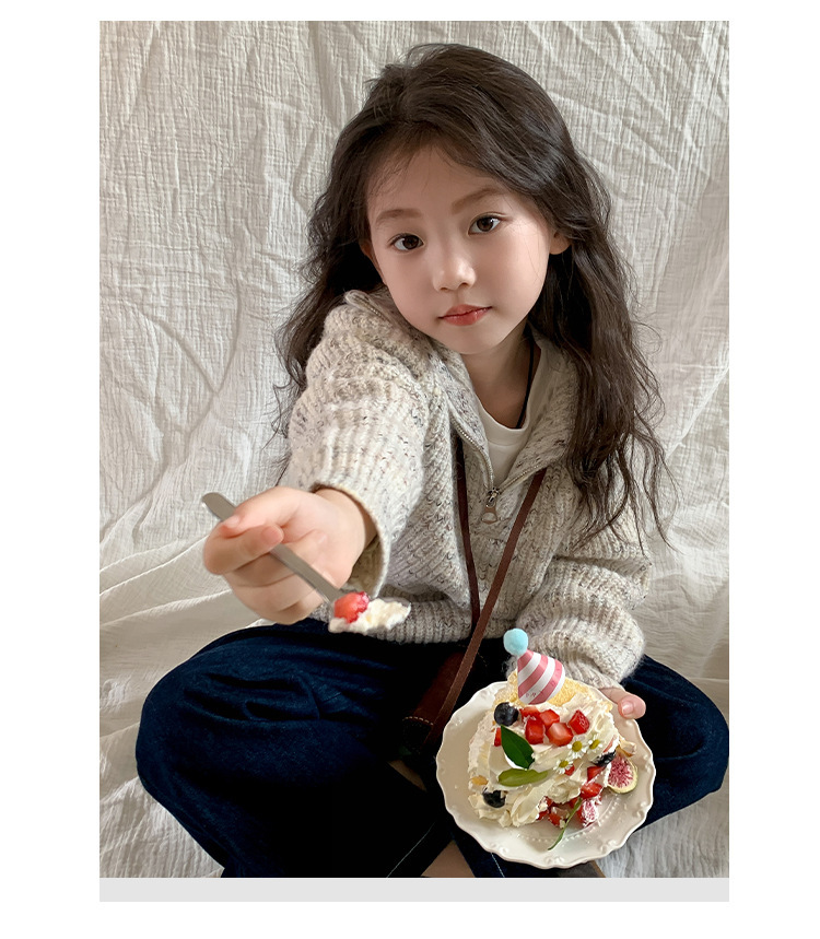 소녀 스웨터 코트 봄과 가을 한국 소녀 세련된 세련된 어린이 반 지퍼 옷깃 니트 셔츠 탑스토어 가기