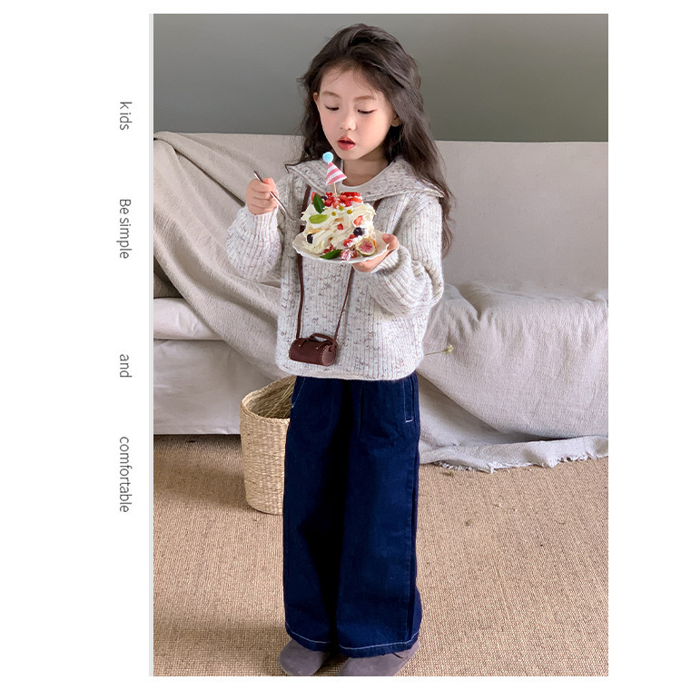 소녀 스웨터 코트 봄과 가을 한국 소녀 세련된 세련된 어린이 반 지퍼 옷깃 니트 셔츠 탑