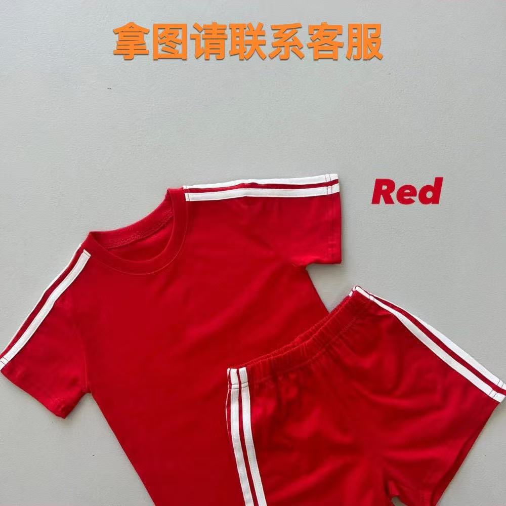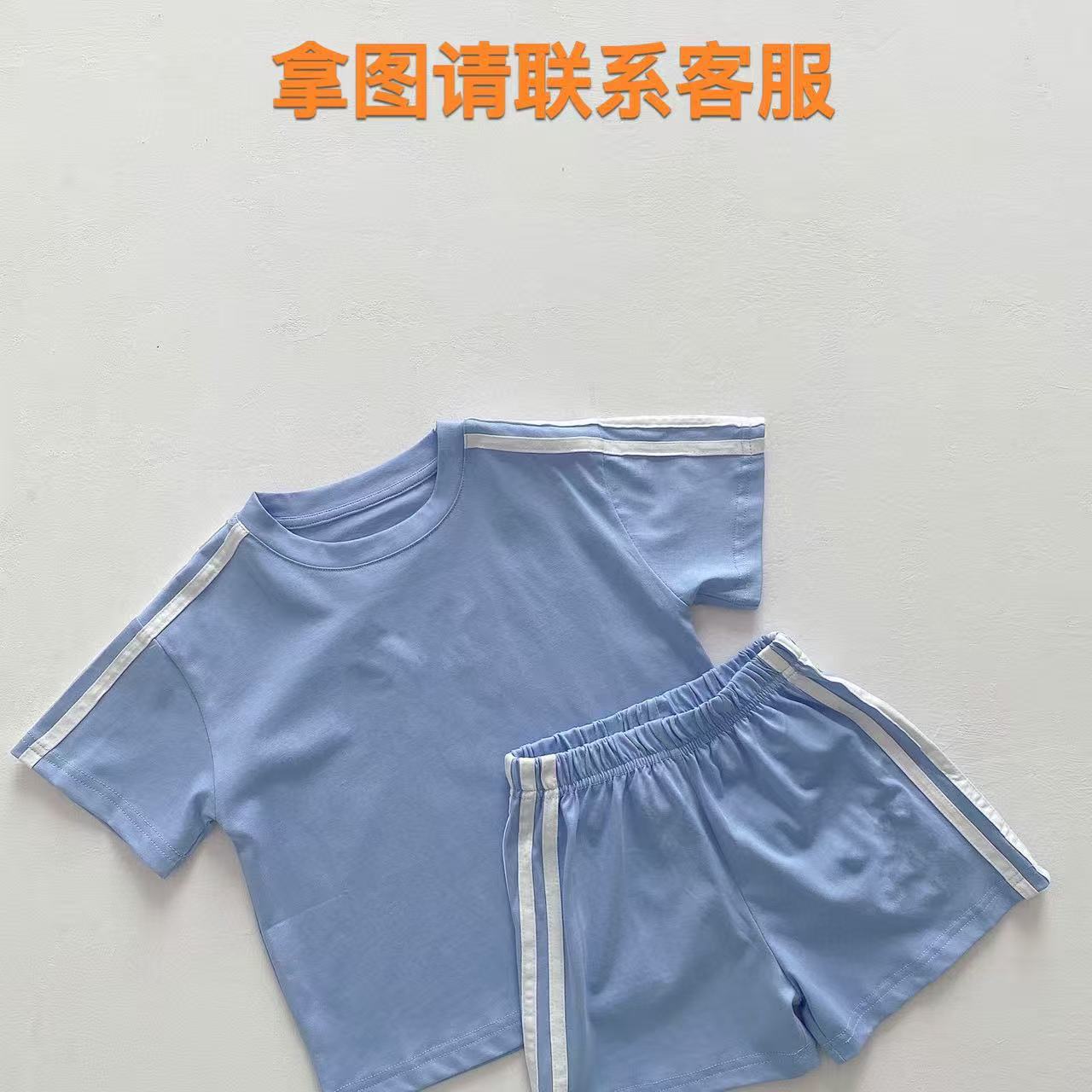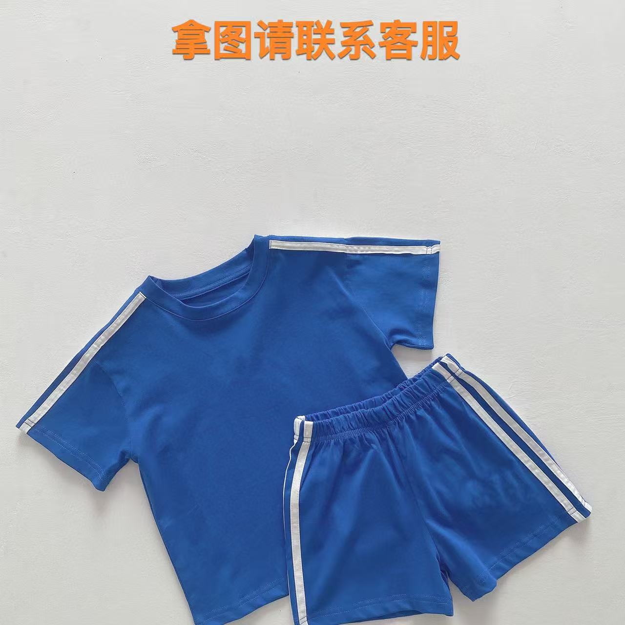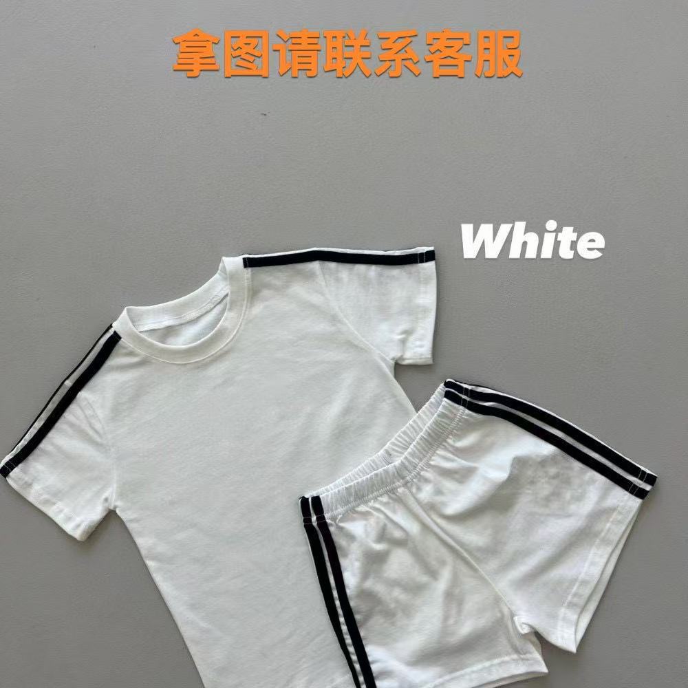 한국 아동복 소년 소녀 편지 반팔 반바지 여름 어린이 크루 넥 티셔츠 소년 간단한 자수 투피스 세트스토어 가기